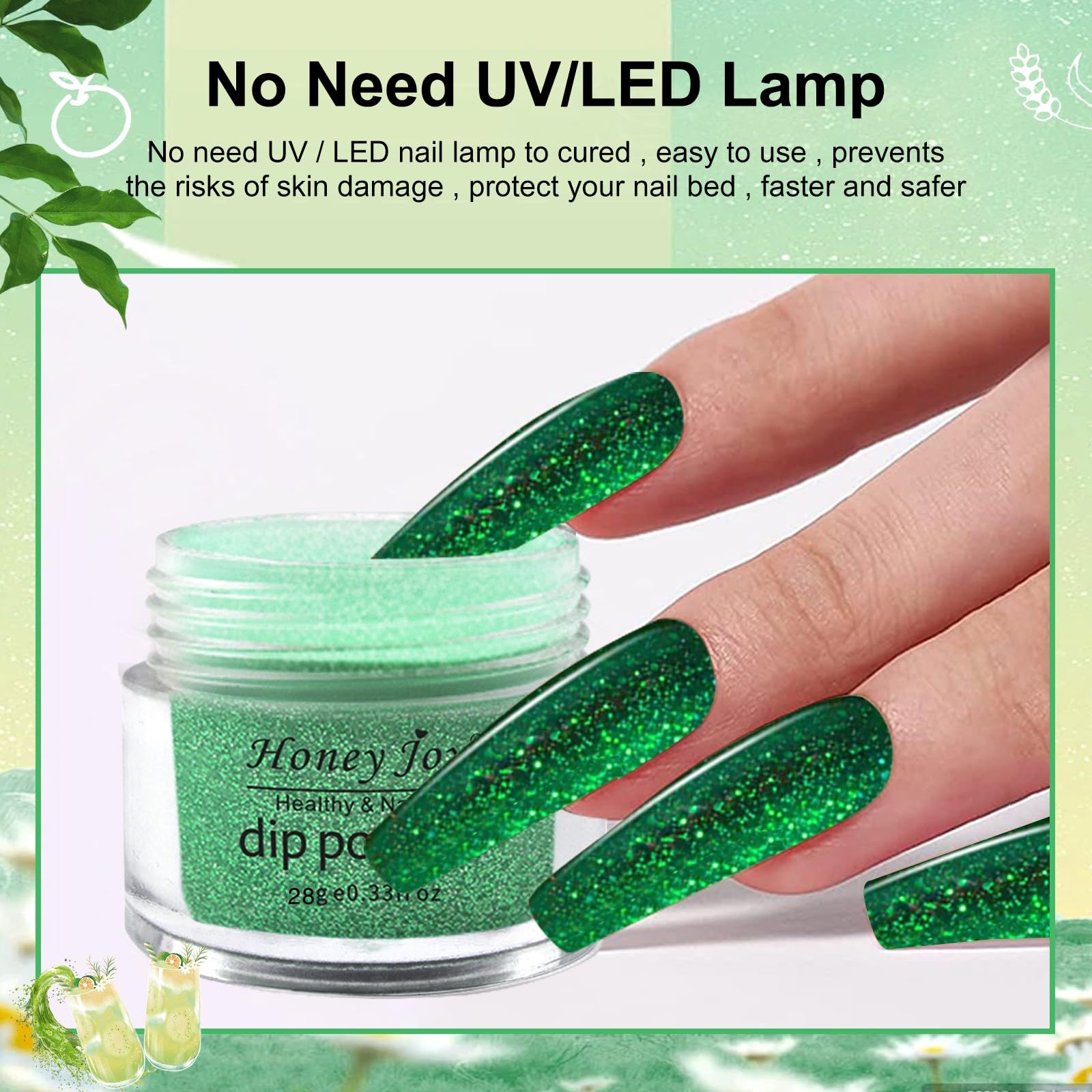 28g/Box Glitter Green Fine Dipping Powder No Lamp Cure Nails Dip Powder Like Gel Nail Natural Dry For Nail Salon£¬No.35