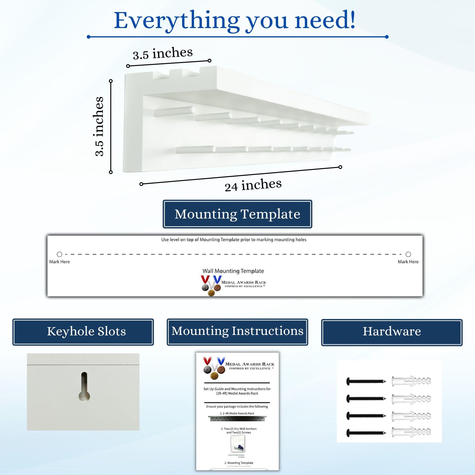 - EASY TO INSTALL β Designed for wall-mounting, this rack maximizes space and keeps your awards neat & organized. We provide a complete kit of supplies needed for an easy installation. This awards hanger comes with all of the necessary screws, wall anchors, and mounting instructions.