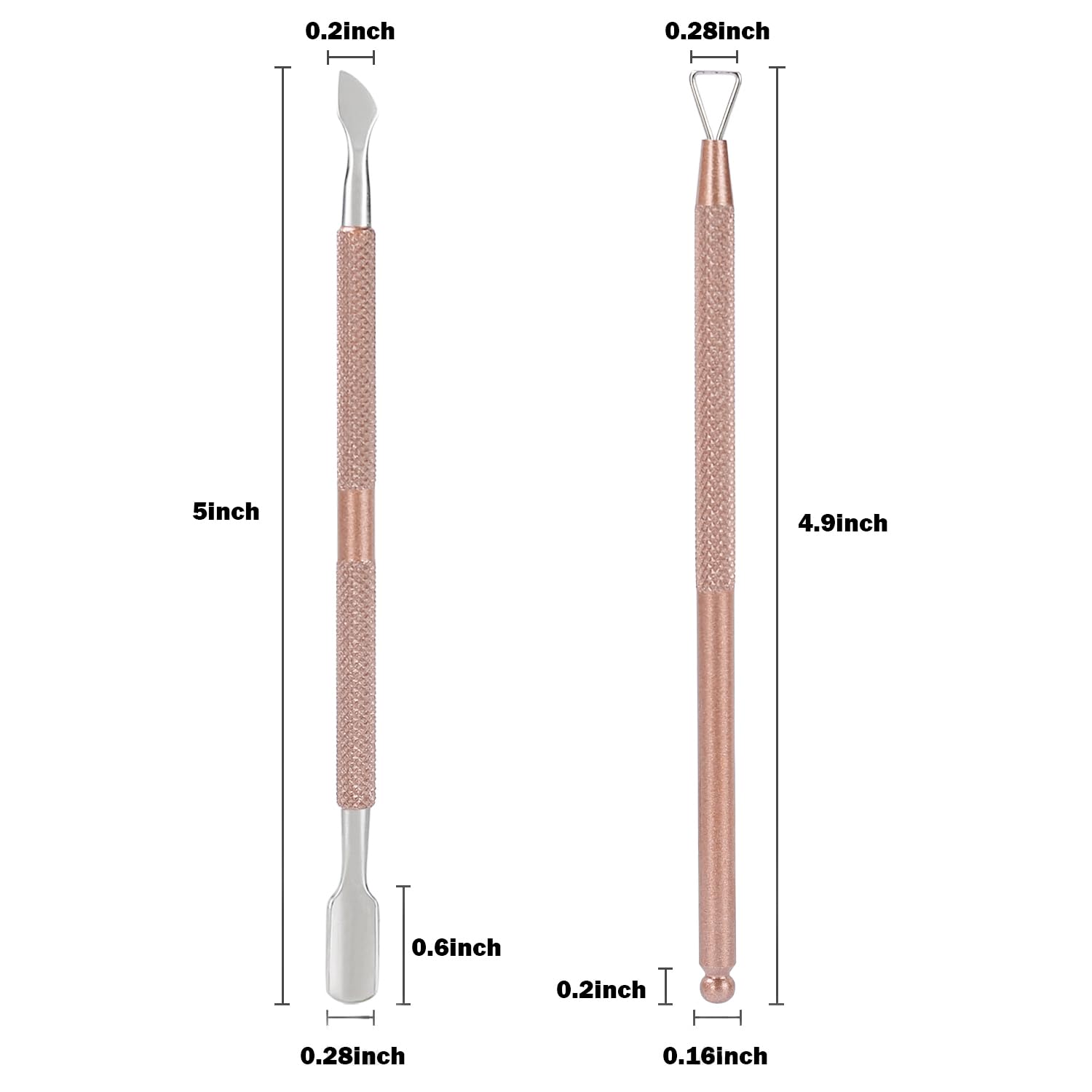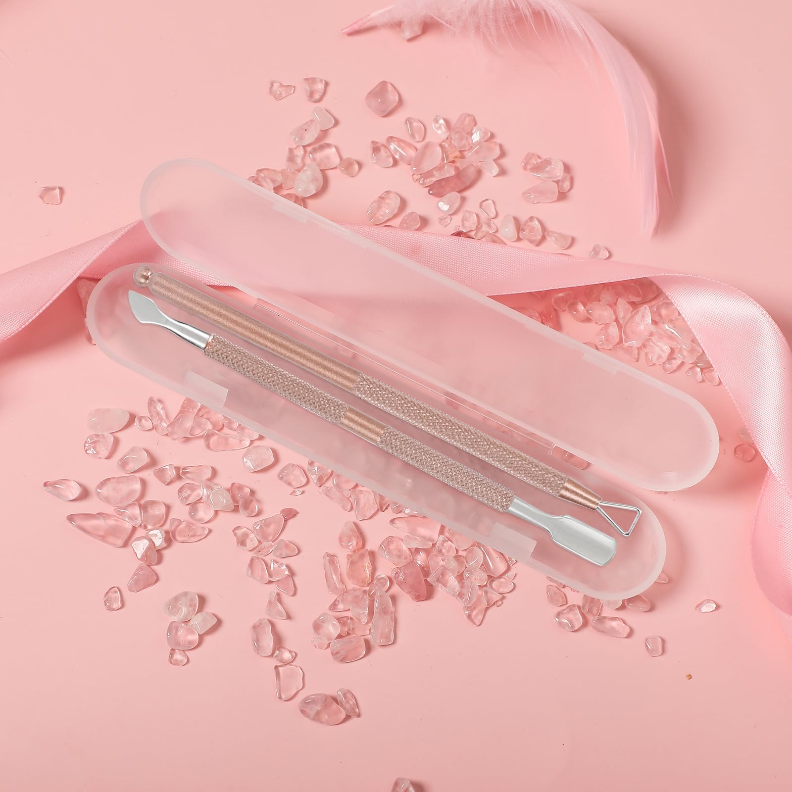 2PCS Cuticle Pusher and Cutter with Storage Case,Professional Cuticle Pusher Nail Polish Remover Stainless Steel Manicure Tool Set,Durable Pedicure Manicure Tools for Fingernails Toenails (Rose-Gold)