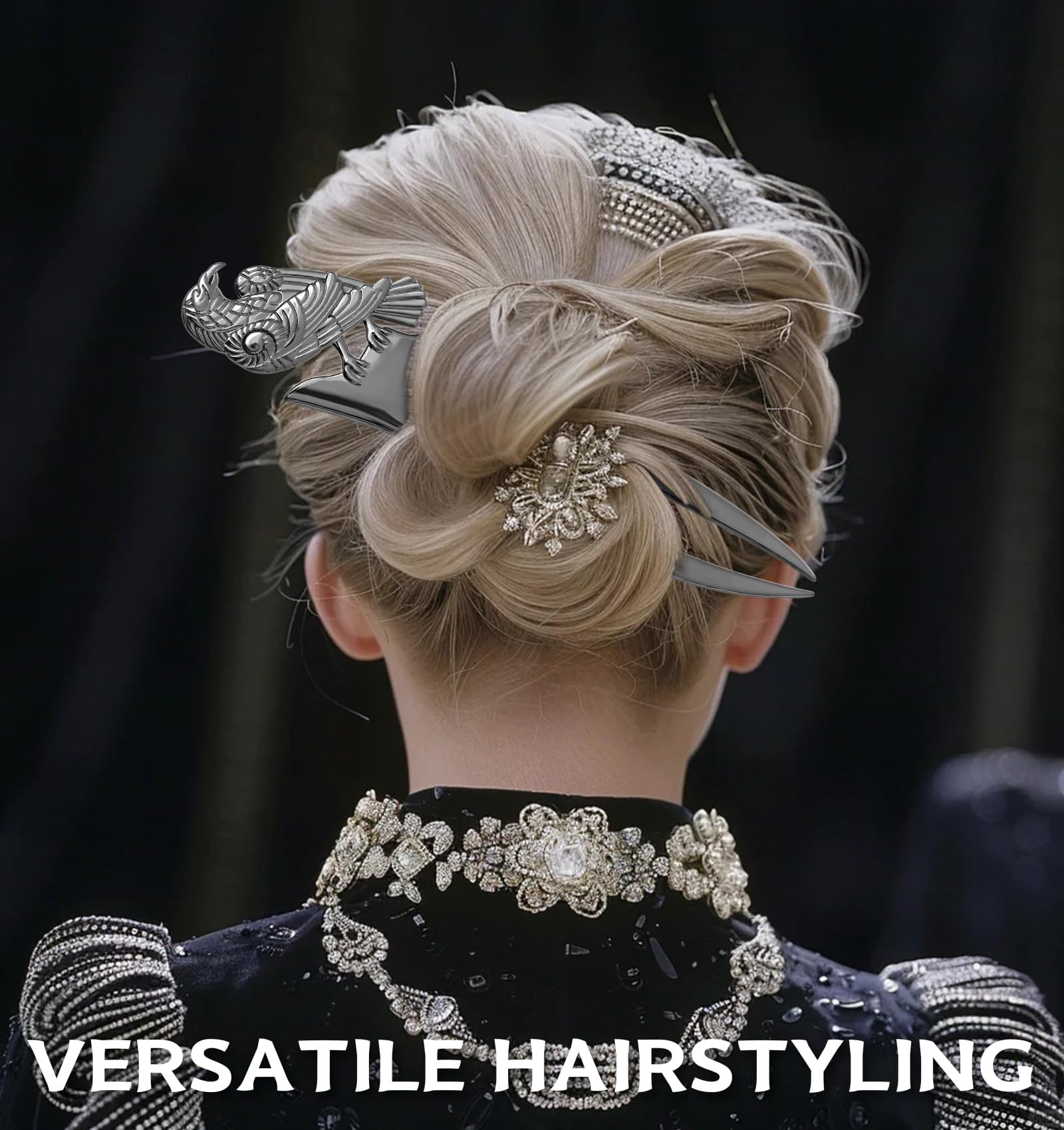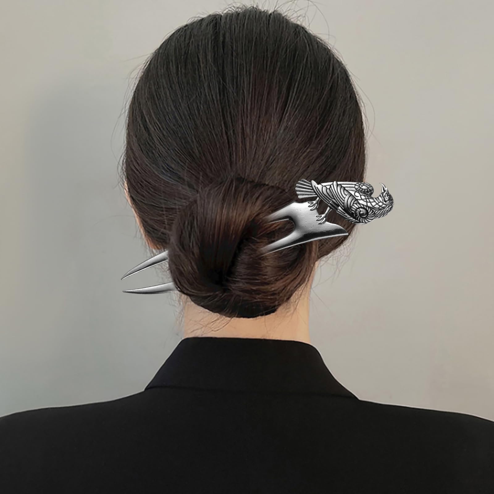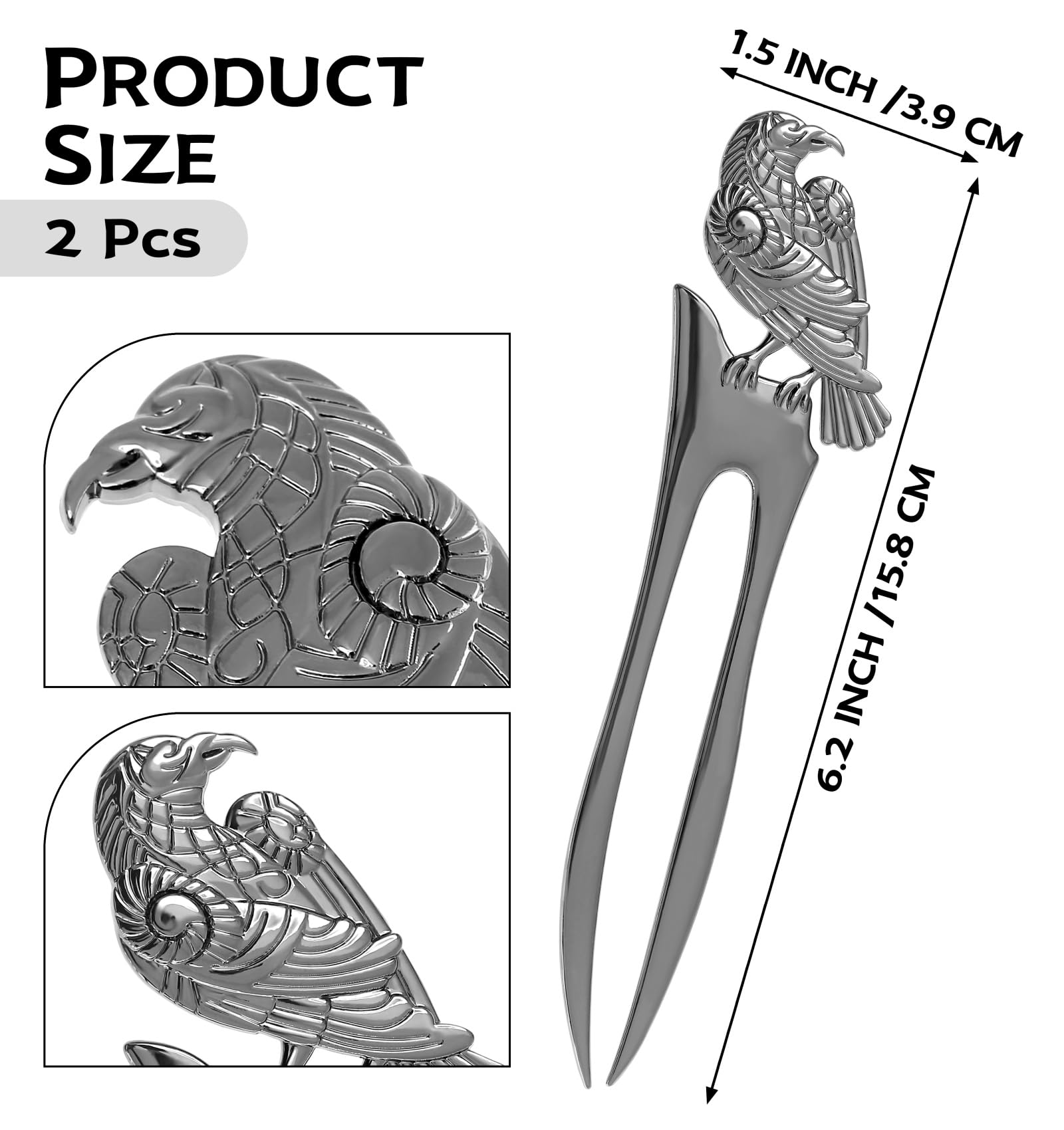 2pcs Metal Gray Raven Forks Styling Pins Black Wicca Witch Hair Stick Slide Renaissance Festival Hair Acceossories for Women 07