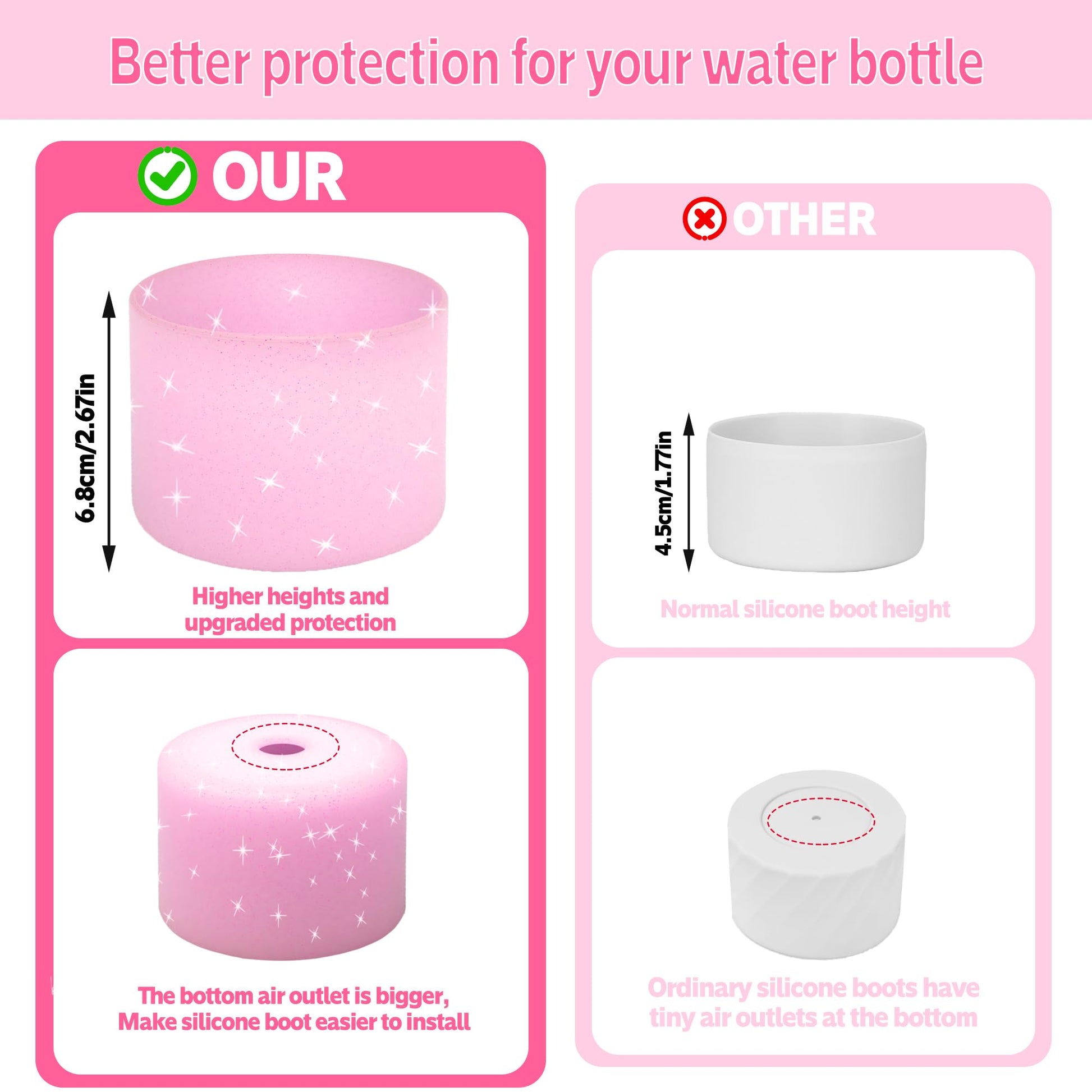 Details: 2PCS Silicone Water Bottle Boot for Owala 24oz 32oz 40oz,Anti-Slip Protective Sleeve Bottom Bumper Protector for FreeSip, Twist, and Flip Stainless Steel Owala Water Bottles Accessories