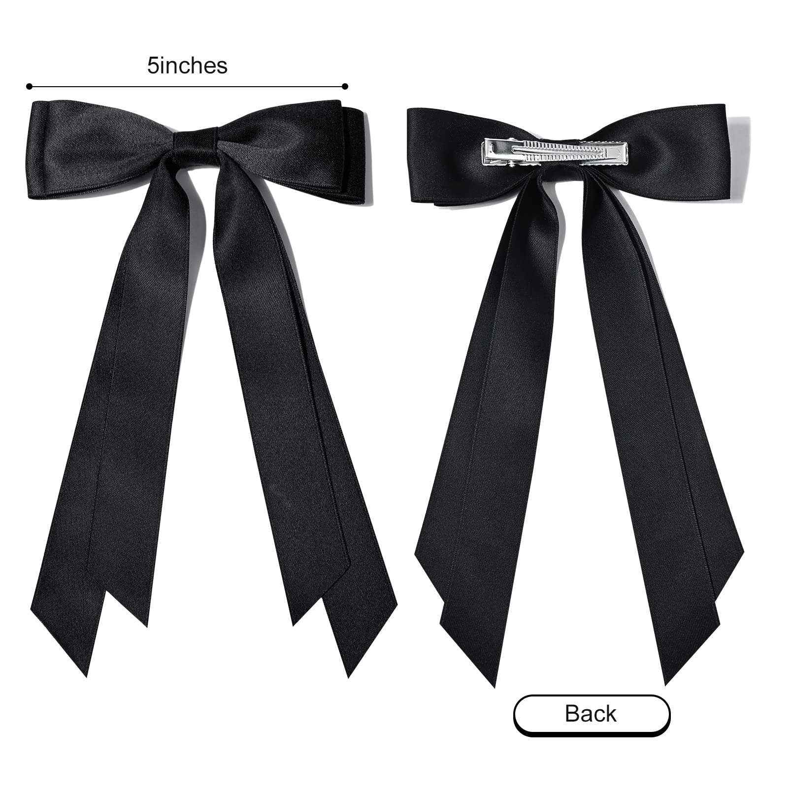 2PCS Silky Satin Hair Bows Hair Clip Black White Hair Ribbon Ponytail Holder Accessories Slides Metal Clips Hair Bow for Women Girls Toddlers Teens Kids