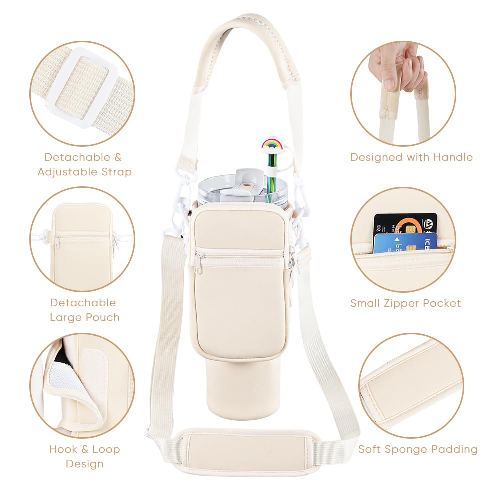 - 3 in 1 Water Bottle Pouch for Stanley: Elevate your outdoor adventures with our water bottle sleeve designed exclusively for Stanley 40 oz tumbler. This innovative bag not only serves as a secure carrier for your 40oz tumbler but also features a detachable pouch and convenient small pocket. Keep your essentials like phone, keys, cash, credit cards, and more within easy reach while on the go.