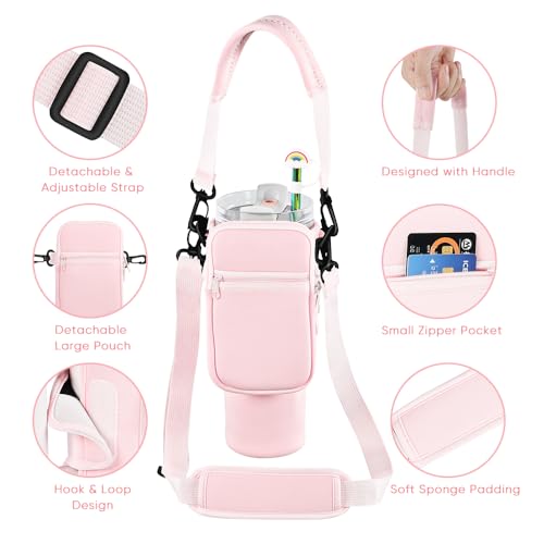 - 3 in 1 Water Bottle Pouch for Stanley: Elevate your outdoor adventures with our water bottle sleeve designed exclusively for Stanley 40 oz tumbler. This innovative bag not only serves as a secure carrier for your 40oz tumbler but also features a detachable pouch and convenient small pocket. Keep your essentials like phone, keys, cash, credit cards, and more within easy reach while on the go.