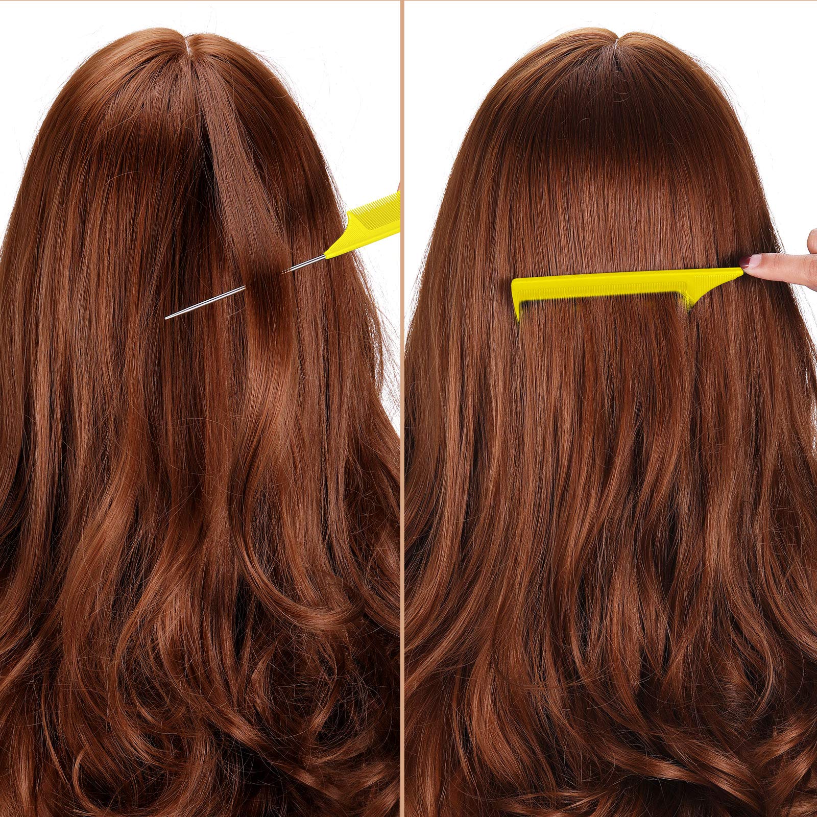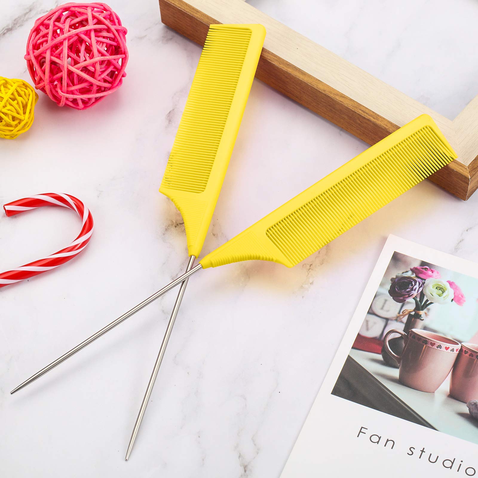 3 Packs Rat Tail Comb Steel Pin Rat Tail Carbon Fiber Heat Resistant Teasing Combs with Stainless Steel Pintail (Yellow)