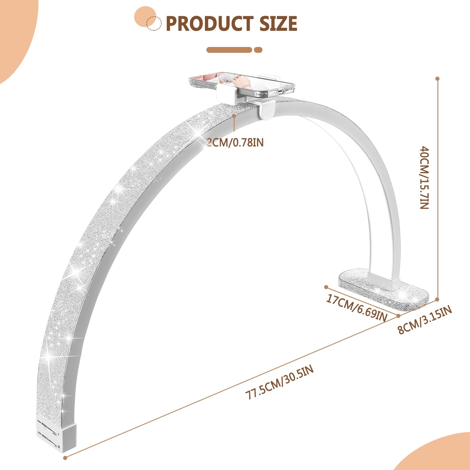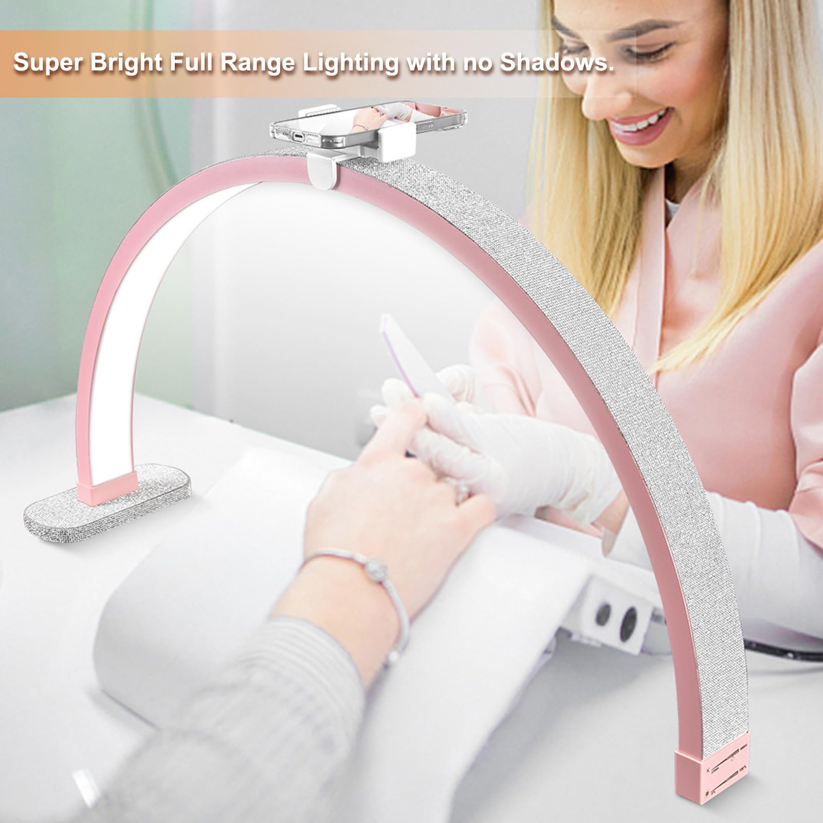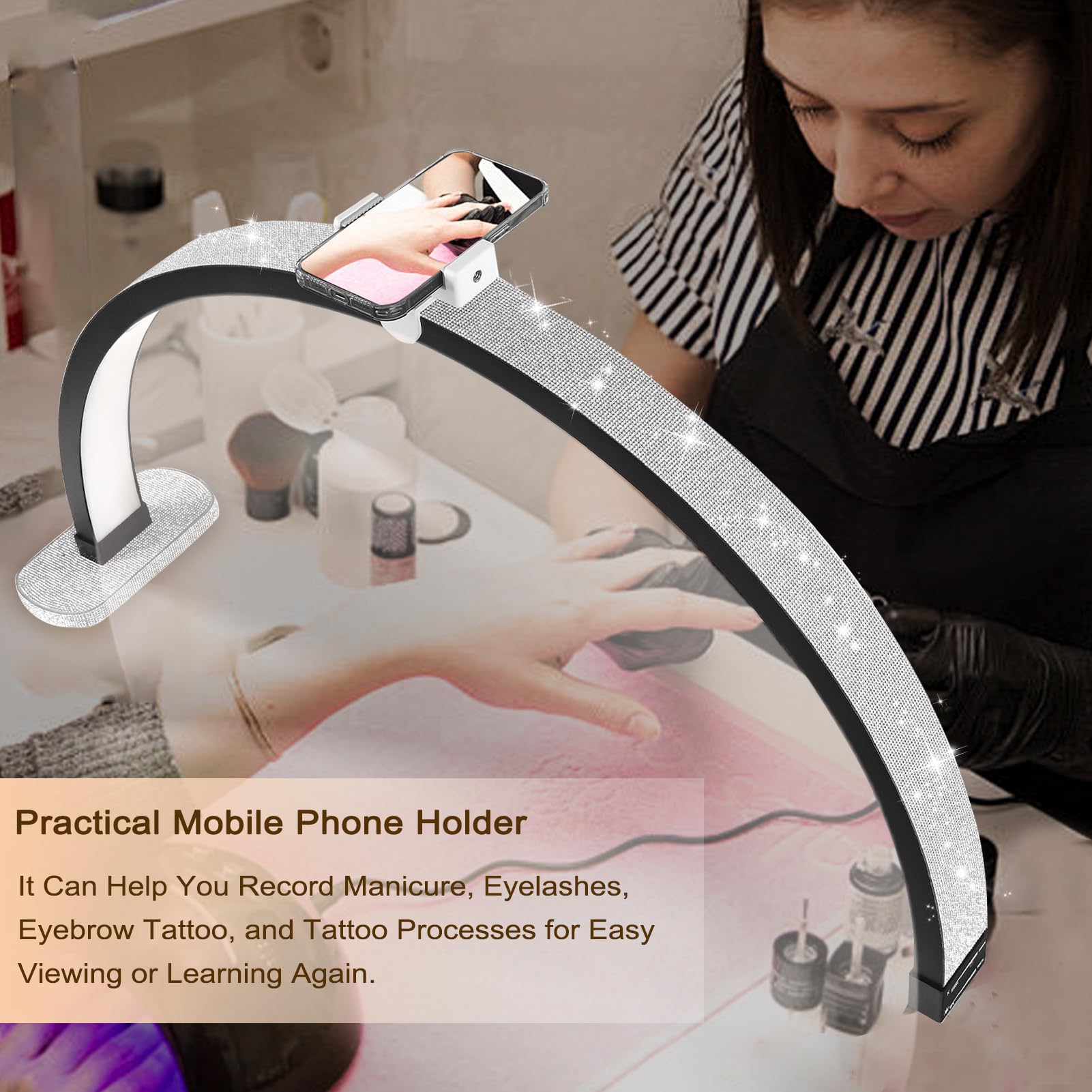 30in Half Moon Light for Nail Desk, Touch Control Nail Light for Desk, Moon Light Nail Tech with Phone Holder, Nail Table Lamp Adjustable Brightness and Color Temperature