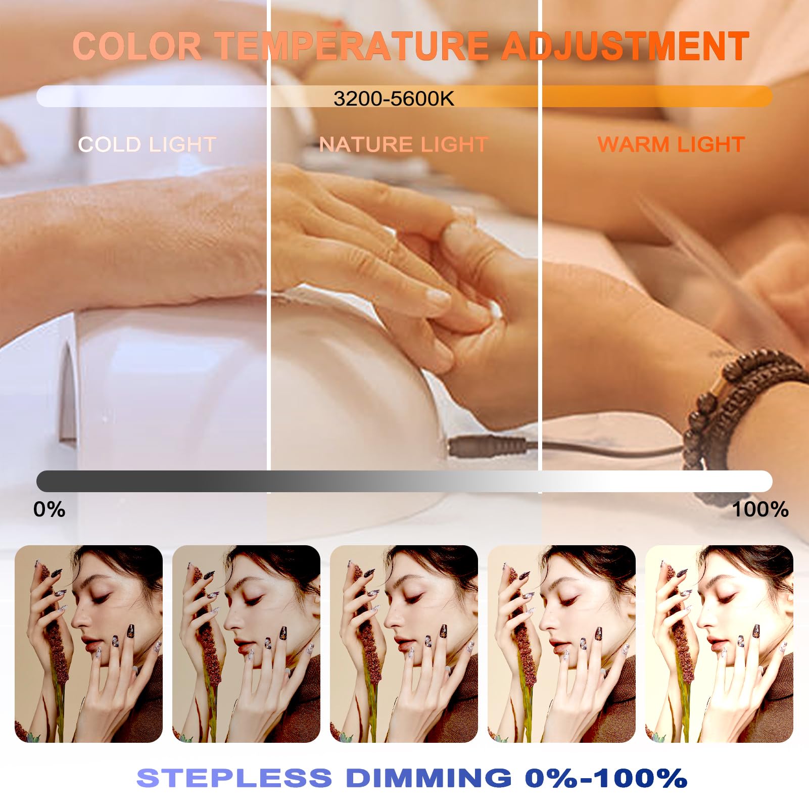 - Touch Adjustment: There is a color temperature and brightness adjustment touch bar on the side of the nail desk lamp, you can easily adjust from white light to warm light, from 10% brightness to 100% brightness. It is convenient and fast, and can be adjusted at any time, so you don't need to look for the remote control switch anymore.