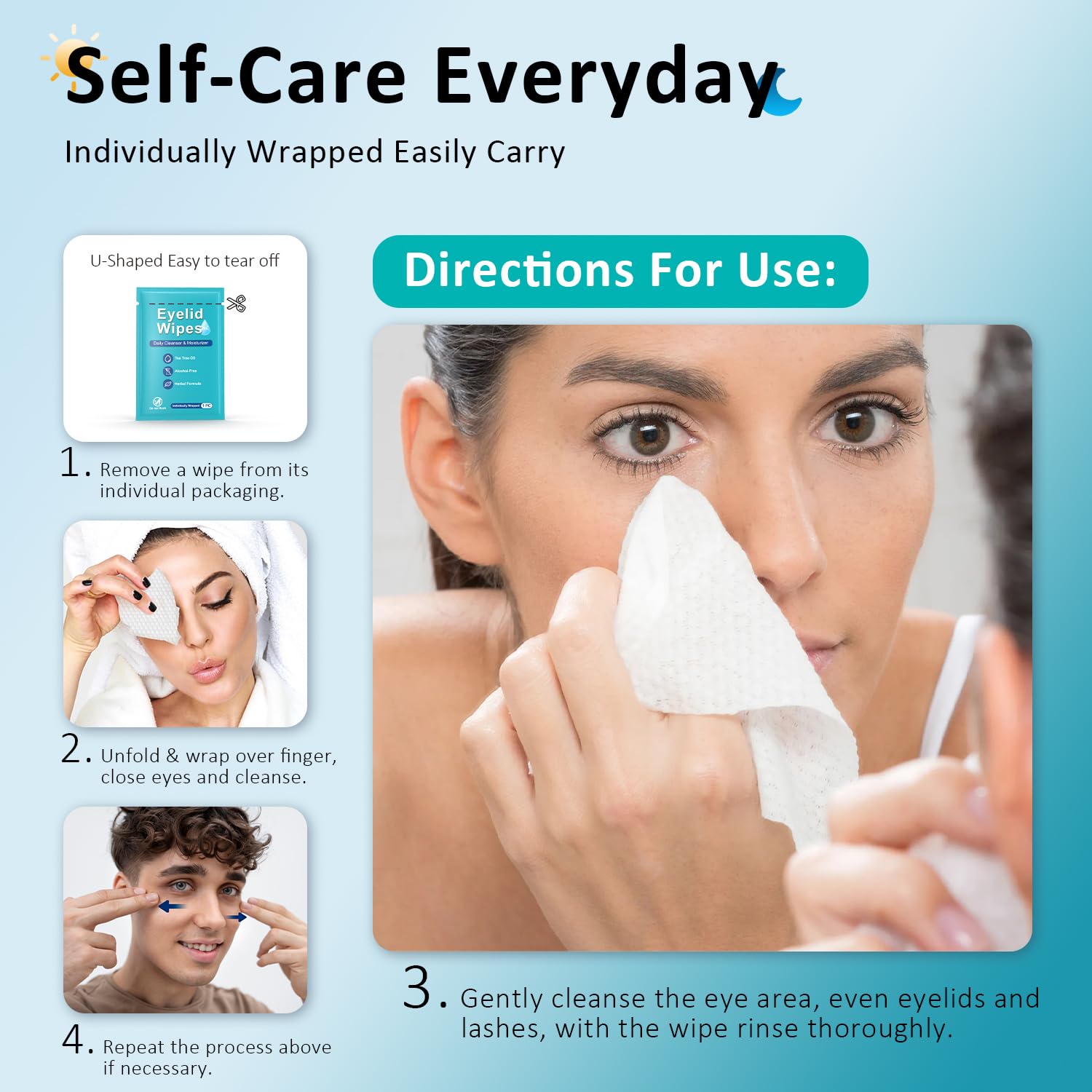 - Effortless, On-The Go: Individually wrapped sachets easily carry, clean and tidy ideal for private eye care. Gentle cleansing wipes for eyes, multi-level care to soothe, hydrated and nourish skin. You'll have never felt so fresh after using our eyelid cleanser wipes. Keep it in your bag during travel to ensure cleanliness everytime, freshen up after workouts