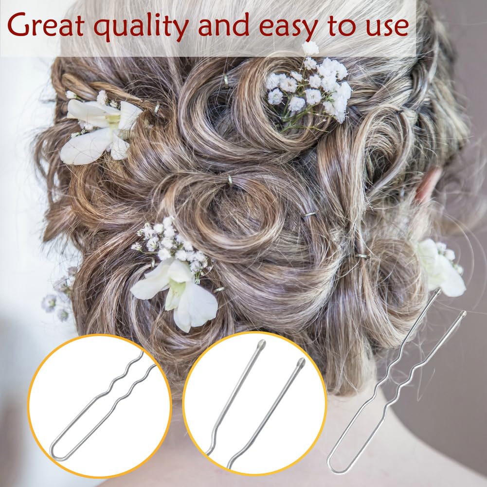 - ✅HAIR PINS EASY TO USE AND REMOVE: U shaped hair pins are open ended. slide it in a little, then turn and slide it the other direction. bun hair pins are non-damaging, unlike regular pins which rub against your hair causing damage, great hair pins for updos, hair pins for women hair accessories