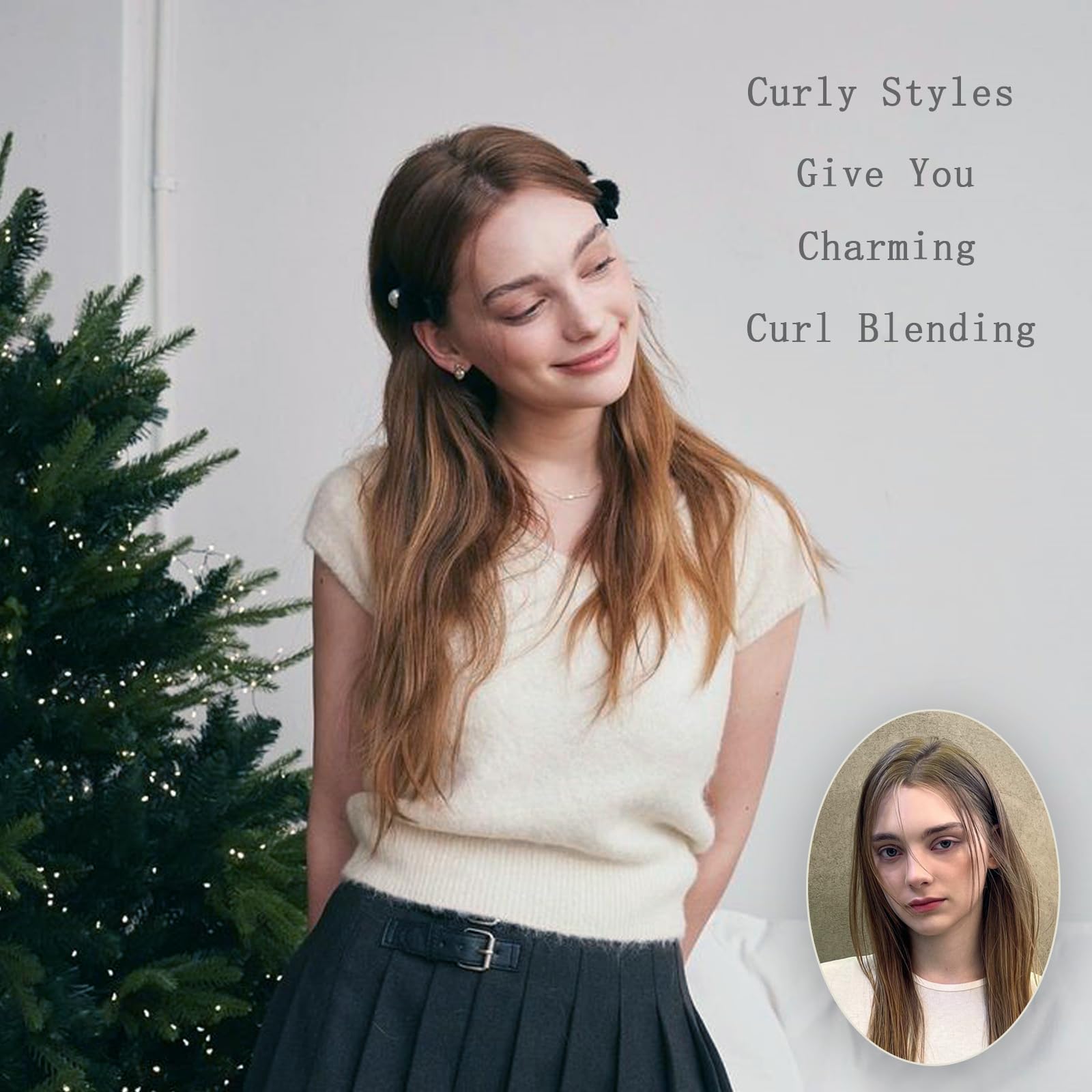 - Easy Application Secure Hold: This long curly hair toppers for women is no glue, no sewing, just open the 3 anti-slip clips and apply to your crown, make sure the wavy hair topper stays in place well.