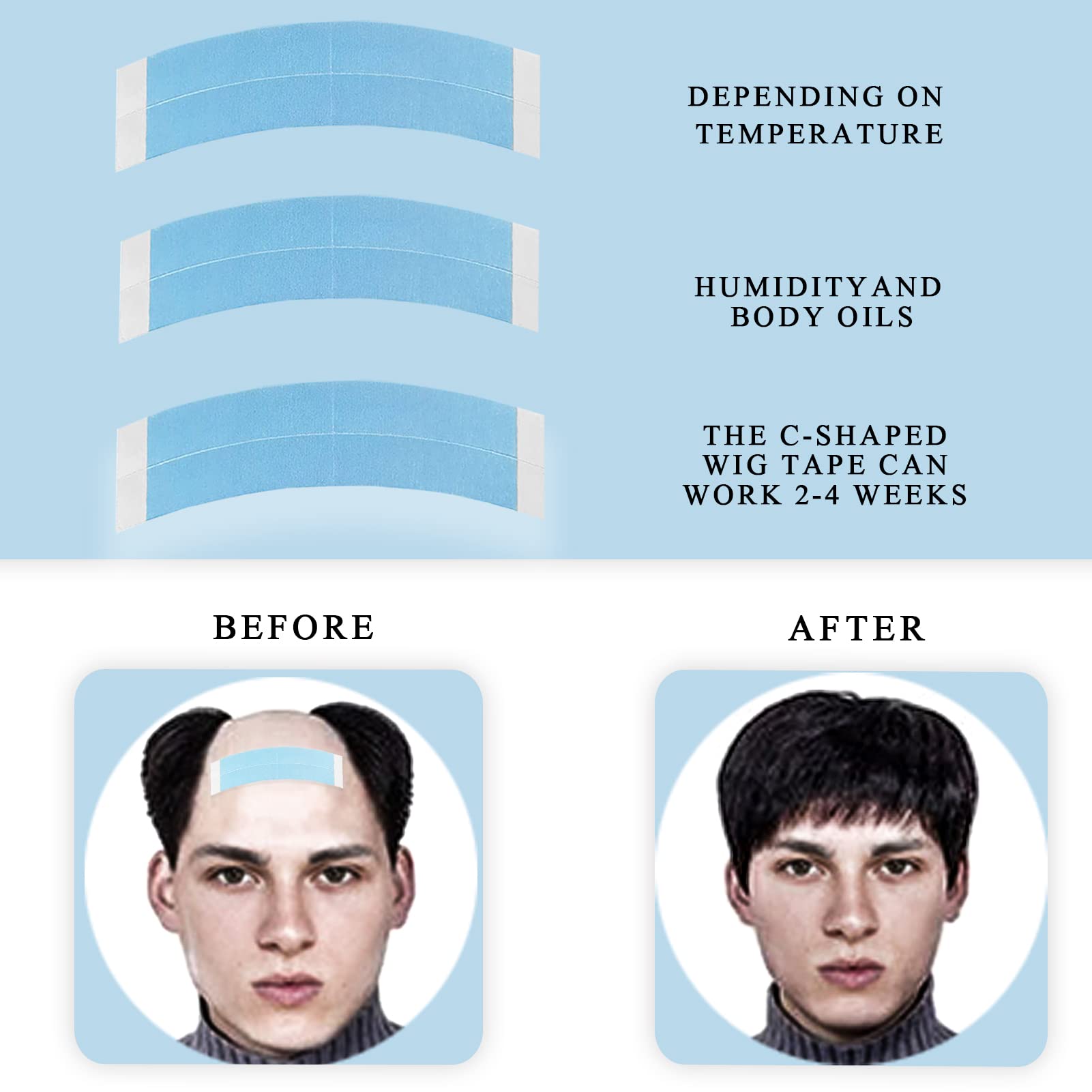 - Safe Material and Waterproof Lace Tape: The C-shaped wig tapes are made of safe adhesive, which is equipped with good resistance to water, natural, non-toxic, comfortable to touch, sometimes you don't even feel it with wearing them and can do some underwater exercises and recreational activities.