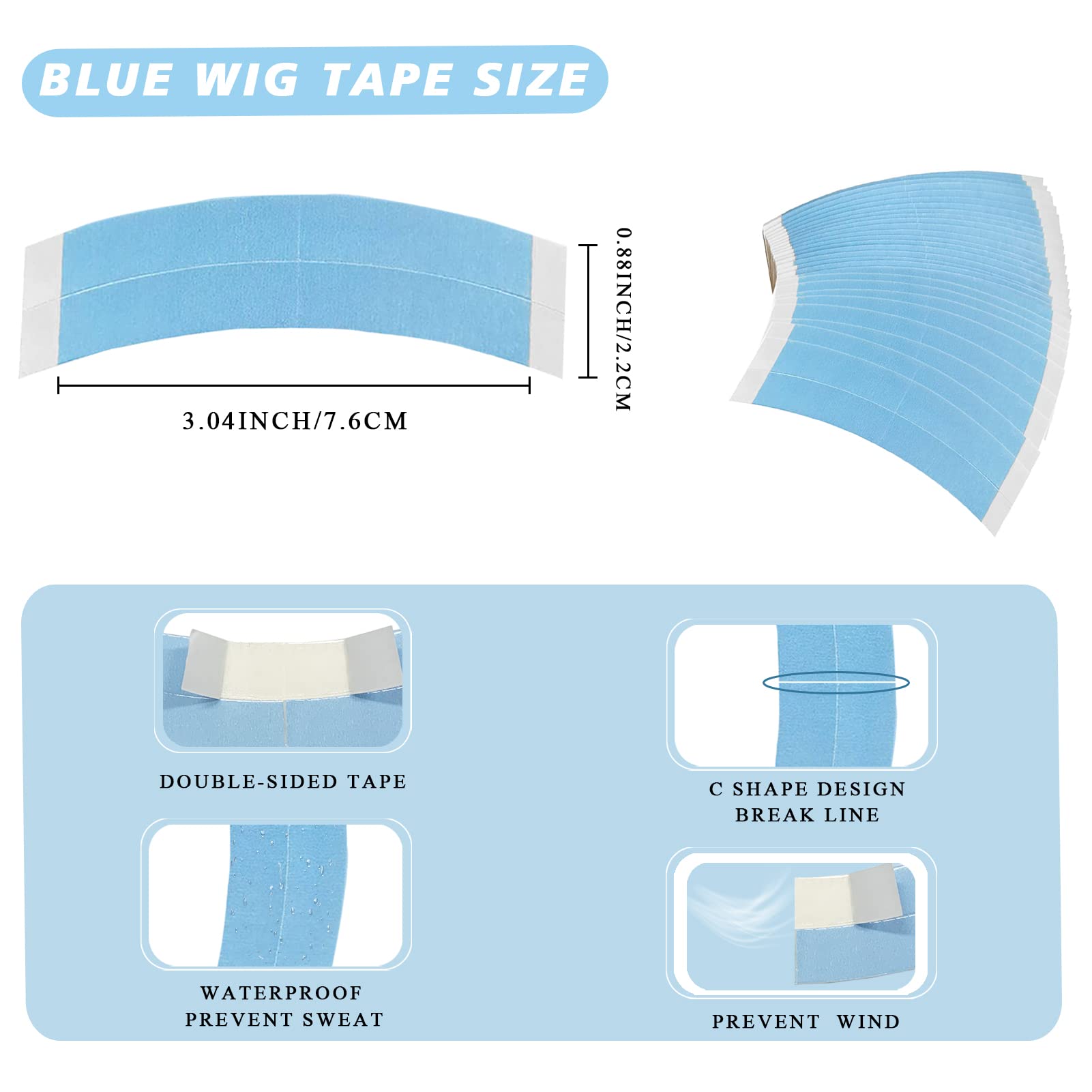 - Convenient C Shapes: These lace wig tapes feature curve appearances, they can secure hairpieces according the curve of your head, each of them is about 3.04in/7. 6cm x 0.88 inch/ 2.2 cm, proper size to use.