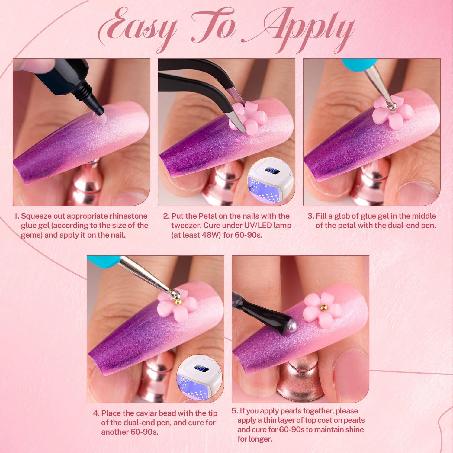 - ✿ Package Content -- It comes with assorted nail charms, including colorful flower nail charms with white half round pearls, 20 pcs butterfly charms, shiny clear & AB glass rhinestones, and mini metal caviar beads. Tweezers and picking pencil are also equipped for your convenience.