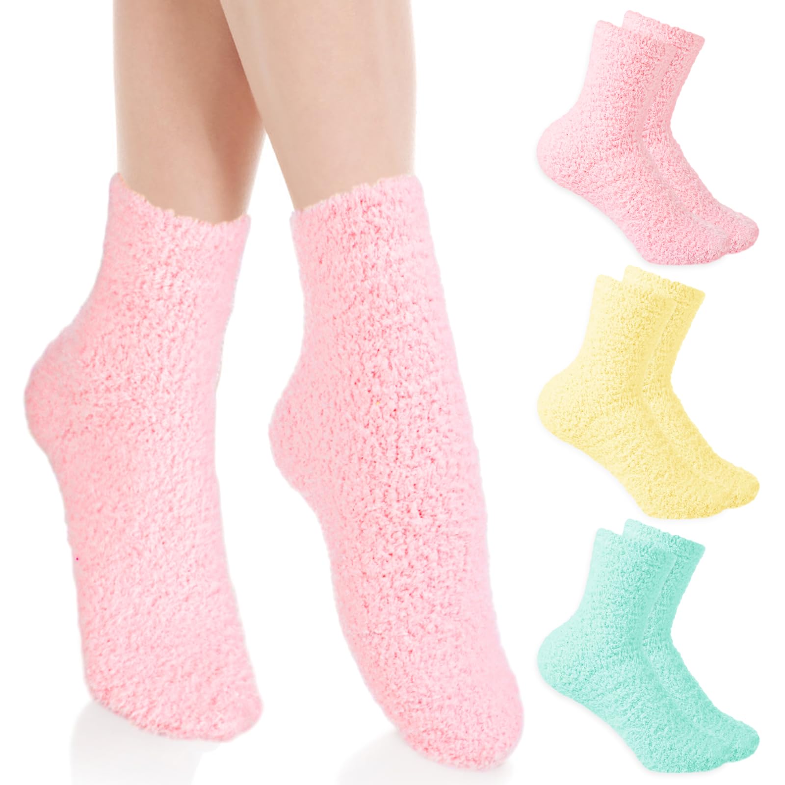 3Pairs Aloe Socks Moisturizing Spa Socks Sleeping Fuzzy Socks for Dry Feet Overnight, Non Slip Coral Fleece Lotion Socks Women Spa Pedicure Foot Care Socks for Repairing Dry Feet,Cracked Heel