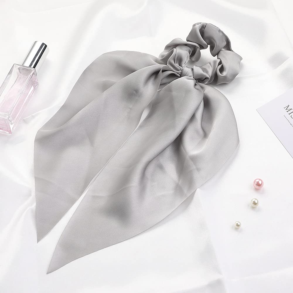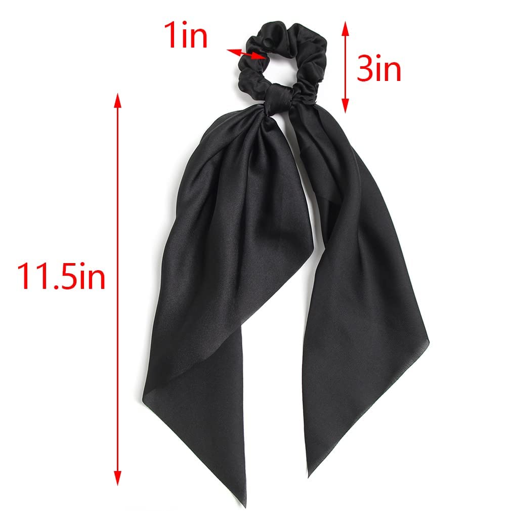 3PCS Hair Scarf Scruncheis for Women Knotted Bow Hair Ties Elastic Bands Satin Hair Ribbon Scrunchy Red Ponytail Holder for Women and Girls (Black White Gray)