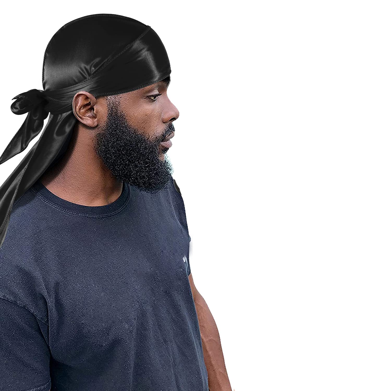 - IDEAL GIFT: It's the best present for Birthday/ Anniversary/ Valentine's Day/ Father's day/ Thanksgiving/ Christmas/ New Year for men or boys over 12 years old. Just buy it! This set includes black, lake blue, rose solid silky du rags and one black cap.