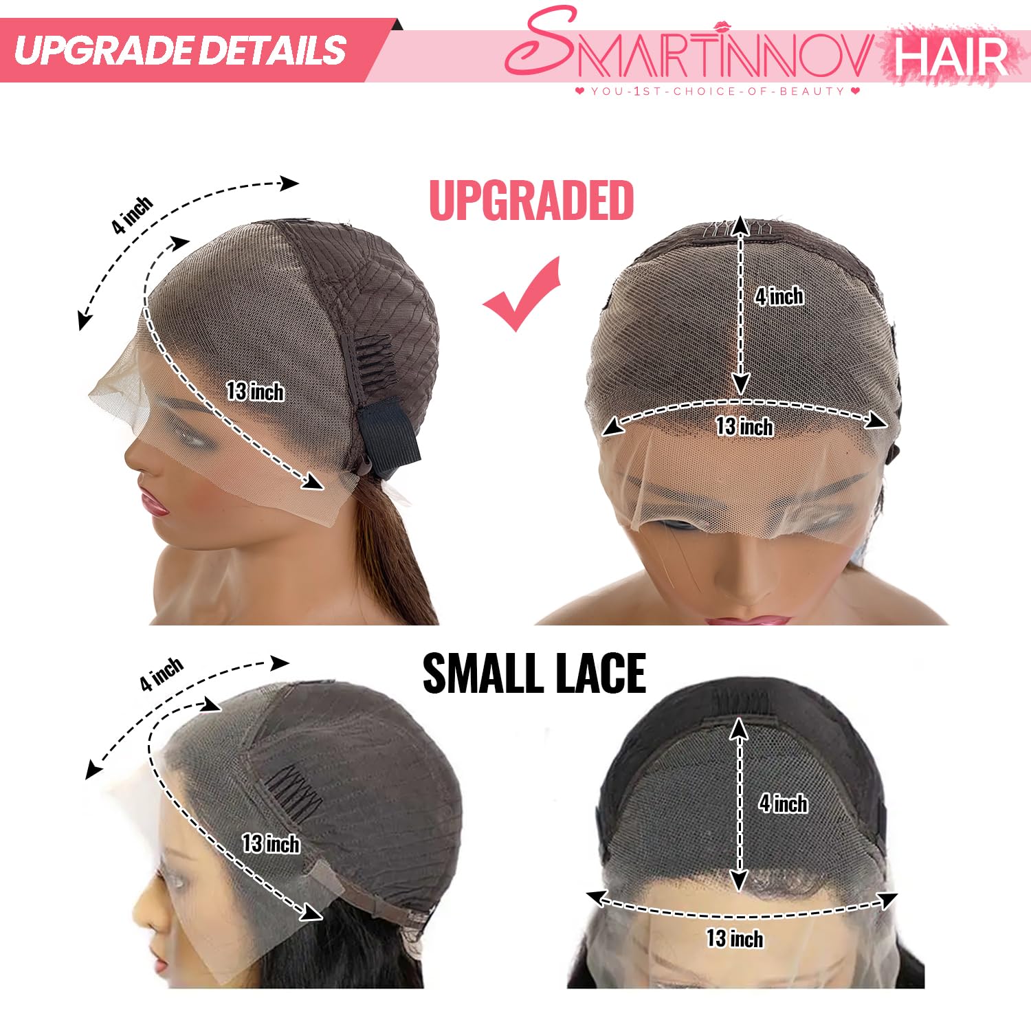 - 【13X4 HD Transparent Lace】Smartinnov 13X4 HD Transparent Lace Melts Perfectly Onto Your Skin, Invisible, Comfortable &Breathable& Durable, 13inch x 4 inch Frontal Can be Parted to Any Side,Glueless, Texture Silky, Can Be Dyed And Curled.Density Is 180% . Suitable For Party, Birthday, Travel, Celebration, Wedding, Graduation, And Daily Life.