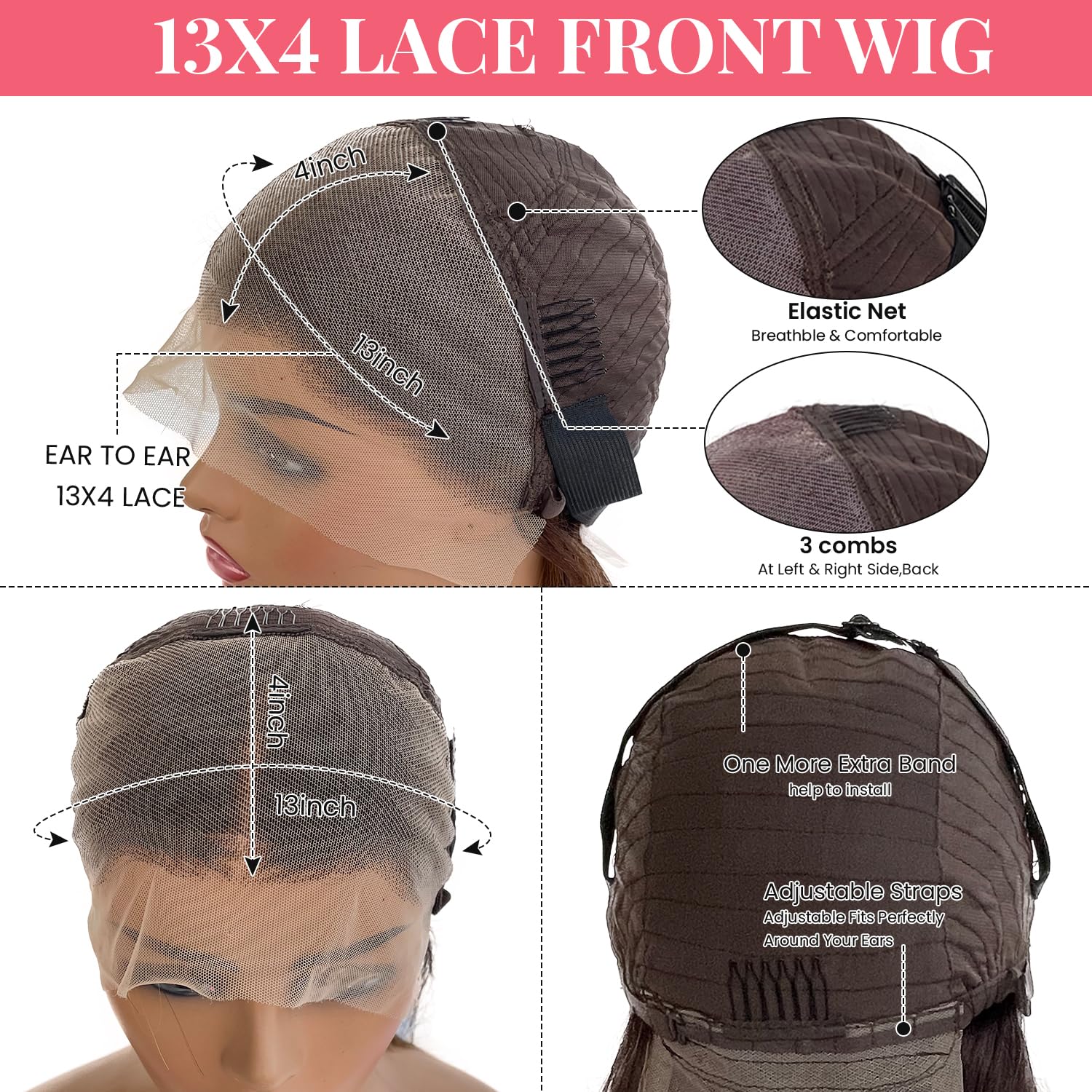 - 【Super Elastic Cap】Medium Size (Average Cap Size about 22-22.5 Inch) With Adjustable Strap, Elastic Bands And Combs Attachedand Combs, Easier To Wear,Durable, Easy to Adjust, Soft And Durable HD Lace, Skin-Friendly Breathable Wig Cap, You Can Fix Well And Adjust The Most Comfortable Tightness Easily To Fit Your Head Perfectly.Convenient To Wear And Take Off Freely.