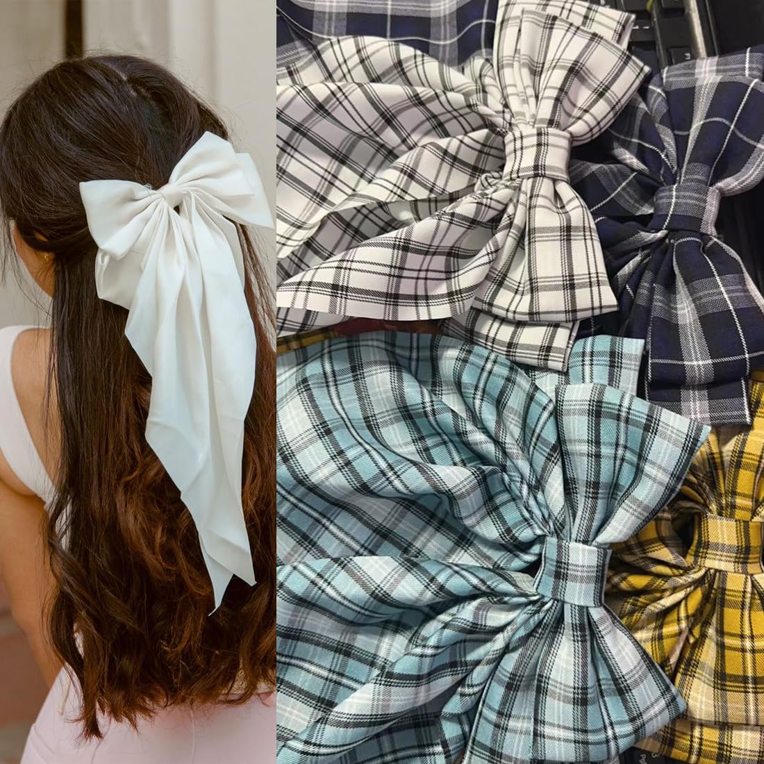 - 【Suitable for all hairstyles】The 7.87*14.76*1.11'bow hair clips is big enough to hold large sections of thick hair, but still close tightly. Will not hurt the scalp or pull down your hair. These bow clips are perfect for any type of hair including thick, thin, curly, fine and more.