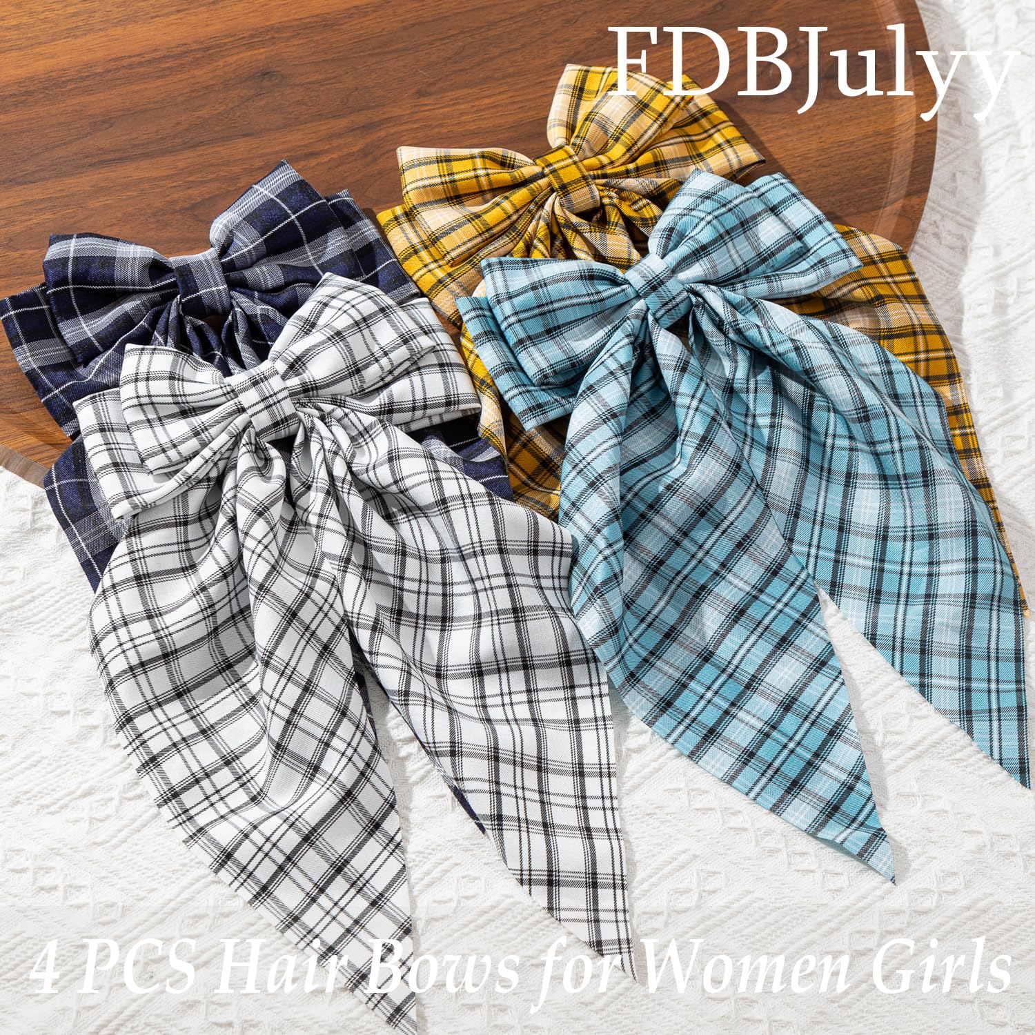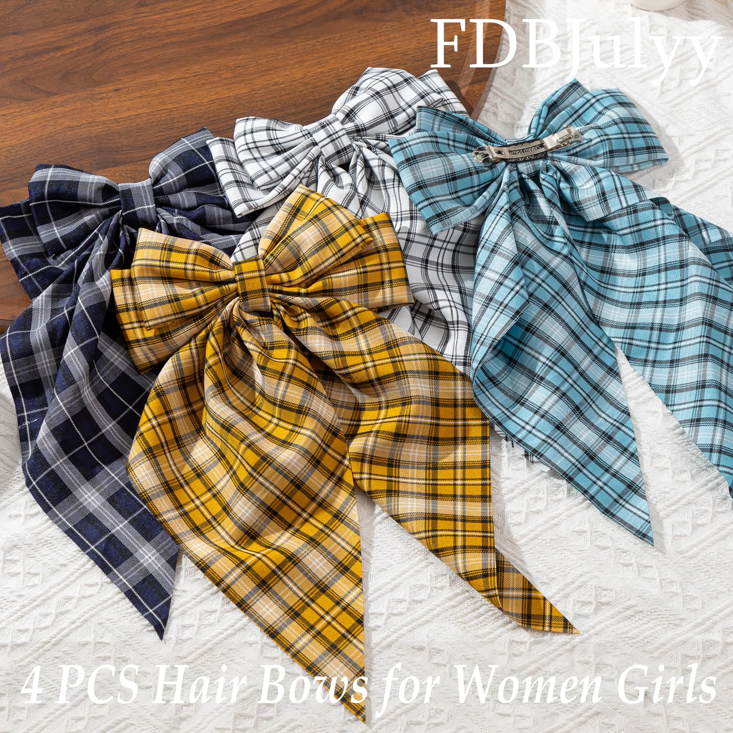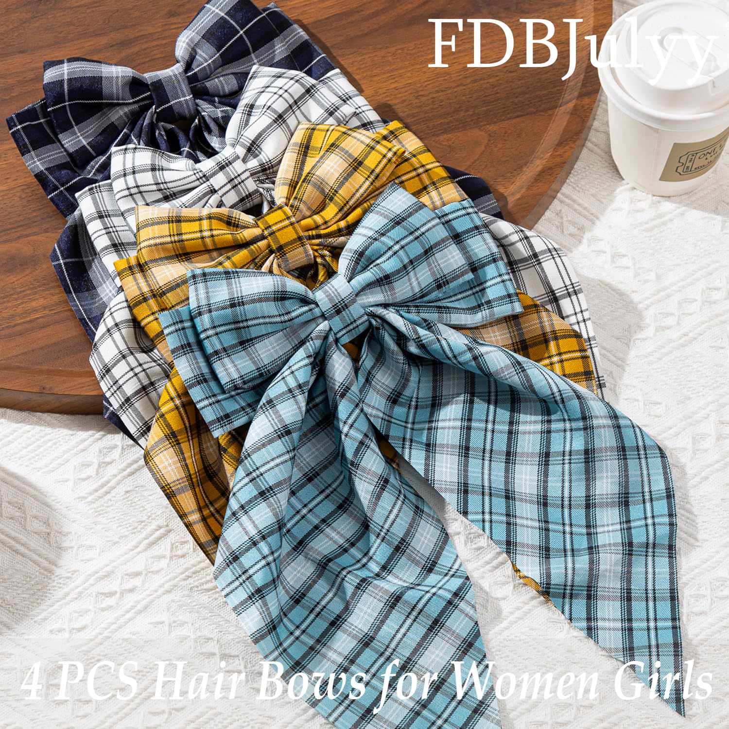 4 PCS Big Hair Bows for Women - Bow-knot Clips for Thick & Thin Hair, Nonslip Bow Claw Clips