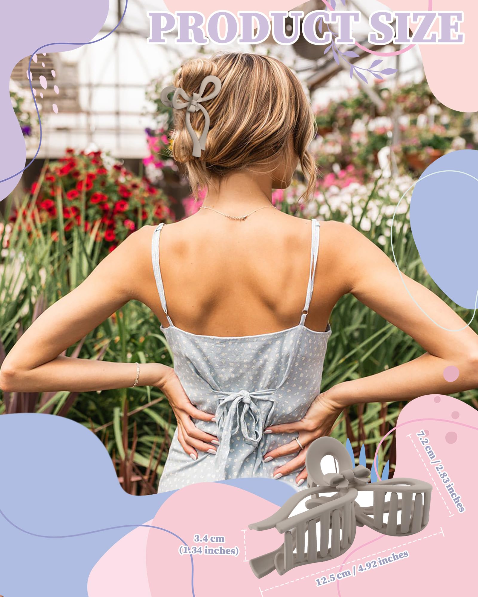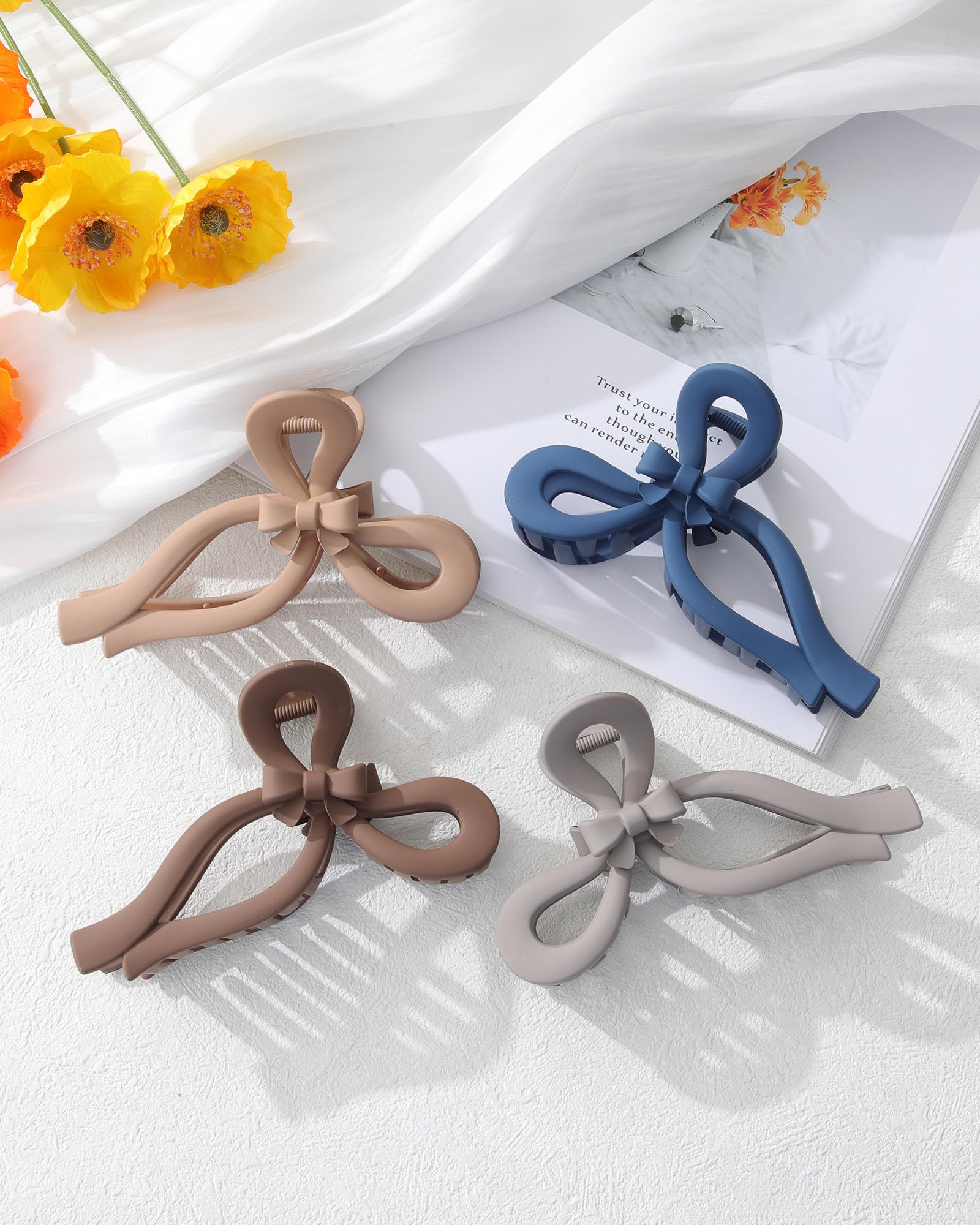 4 PCS Bow Hair Clips Bow Claw Clip for Women Nonslip Large Hair Claw Clips for Thin and Thick Hair Strong Hold Hair Bows (Gray+Light Brown+Dark Brown+Dark Blue)