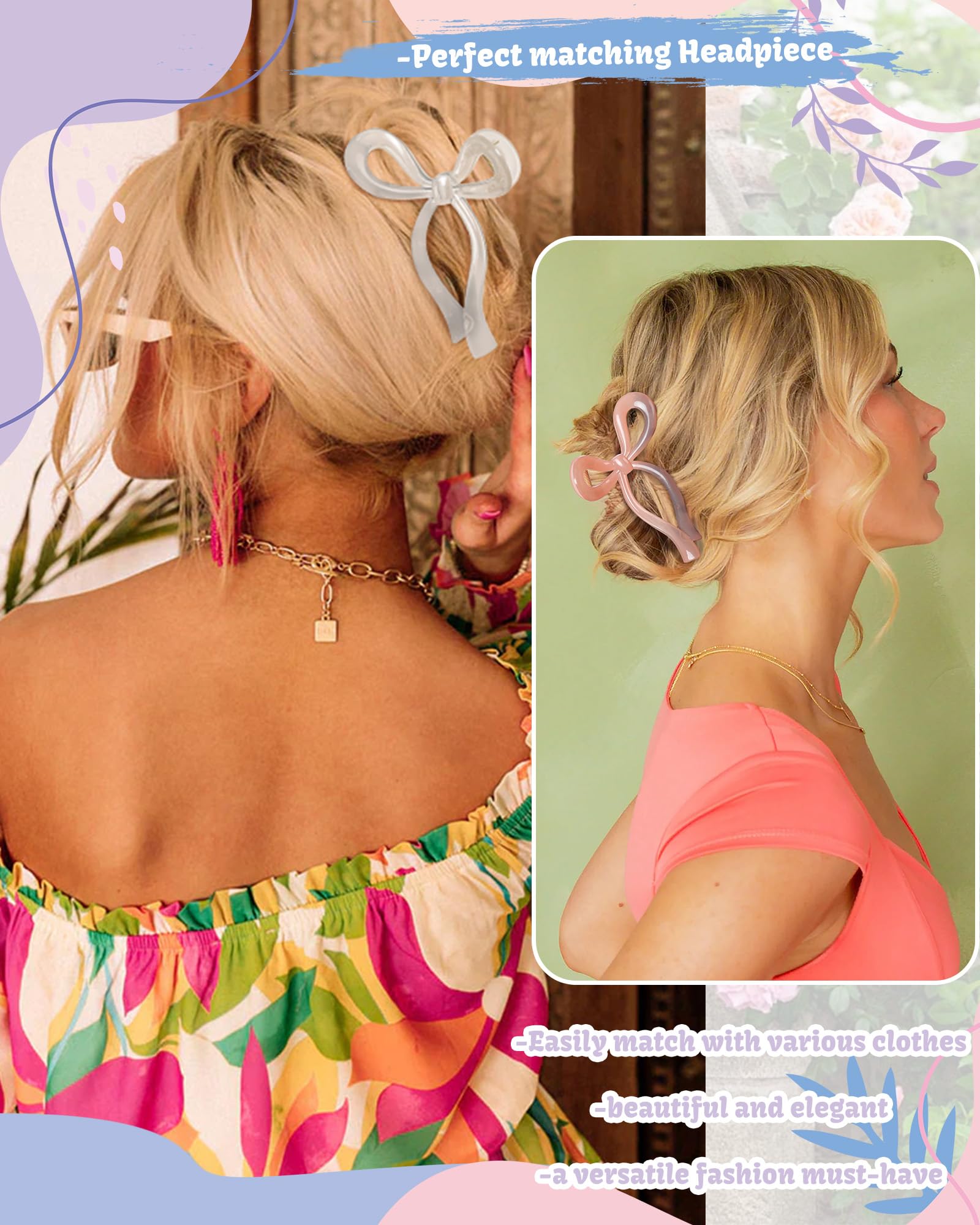 - Package Included:You will receive 4 bow hair clips in different colors. Sufficient quantity, great value for money, suitable for girls and women. Easily match with various clothes, beautiful and elegant, it is a versatile fashion must-have