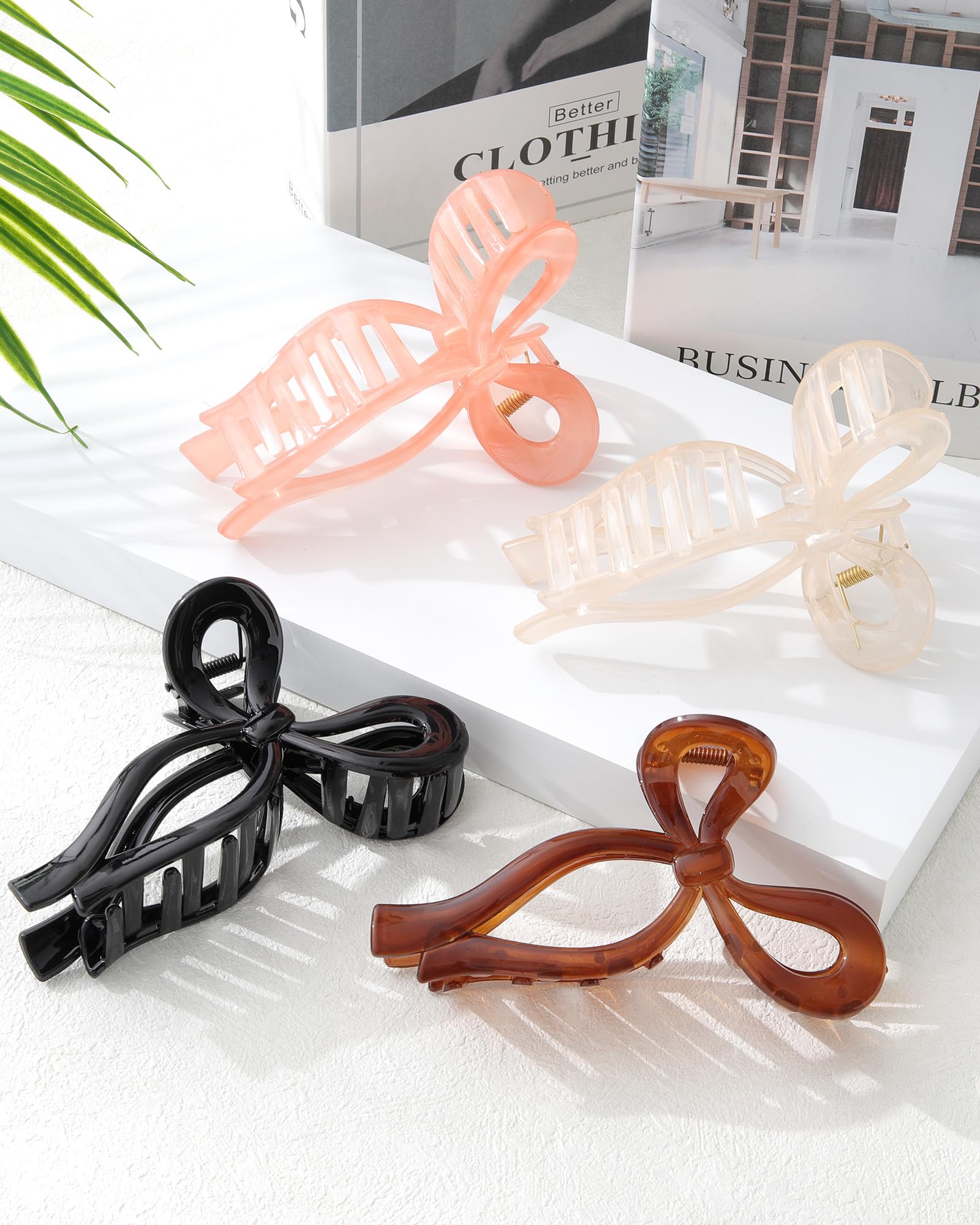 4 PCS Bow Hair Clips Bow Claw Clip for Women Nonslip Large Hair Claw Clips for Thin and Thick Hair Strong Hold Hair Bows (Orange+Coffee+Black+Champagne)