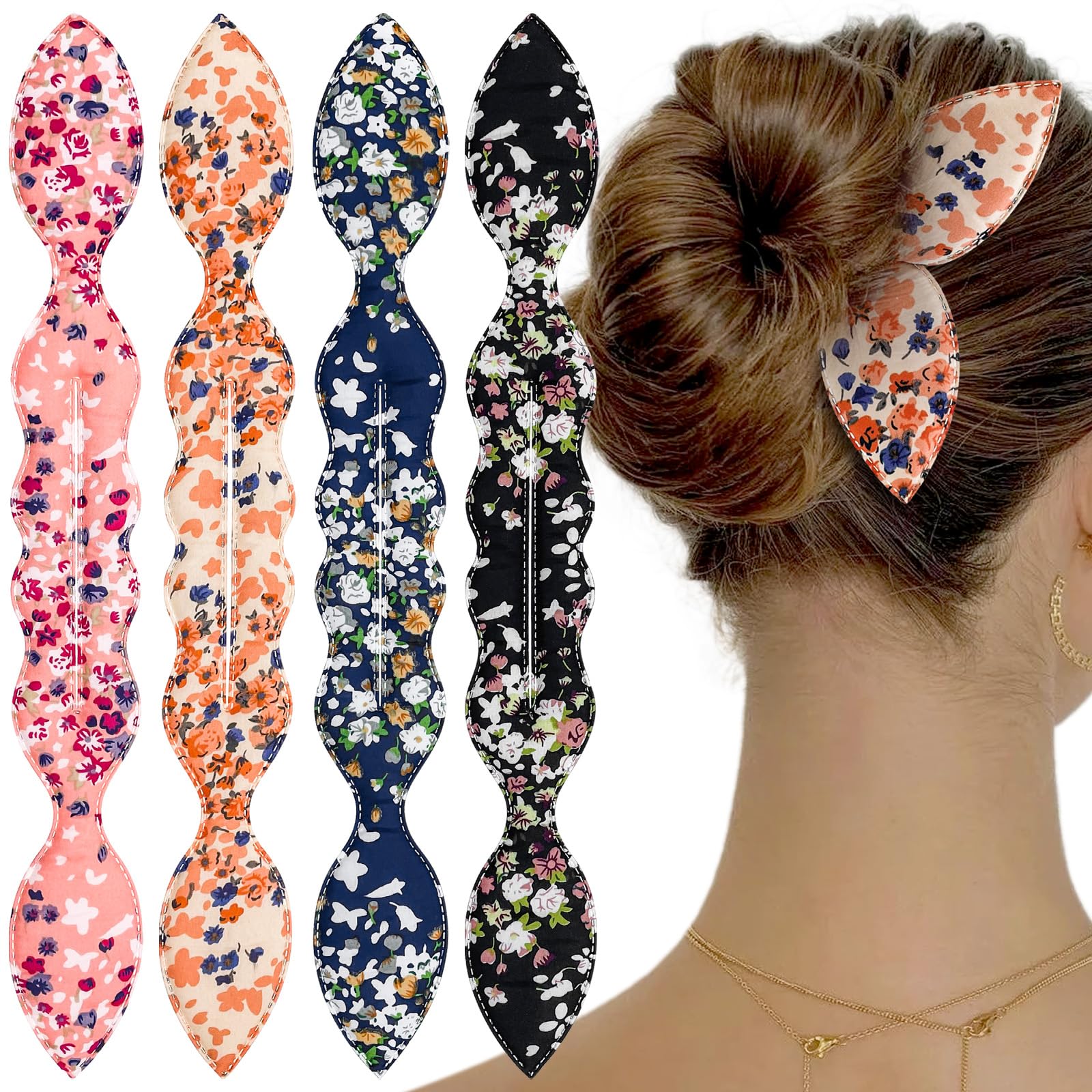 4 Pcs Deft Bun Maker French Twist Rabbit Ear Bun Twister Flower Flexible Quick Hair Styling Accessories for Women Girls