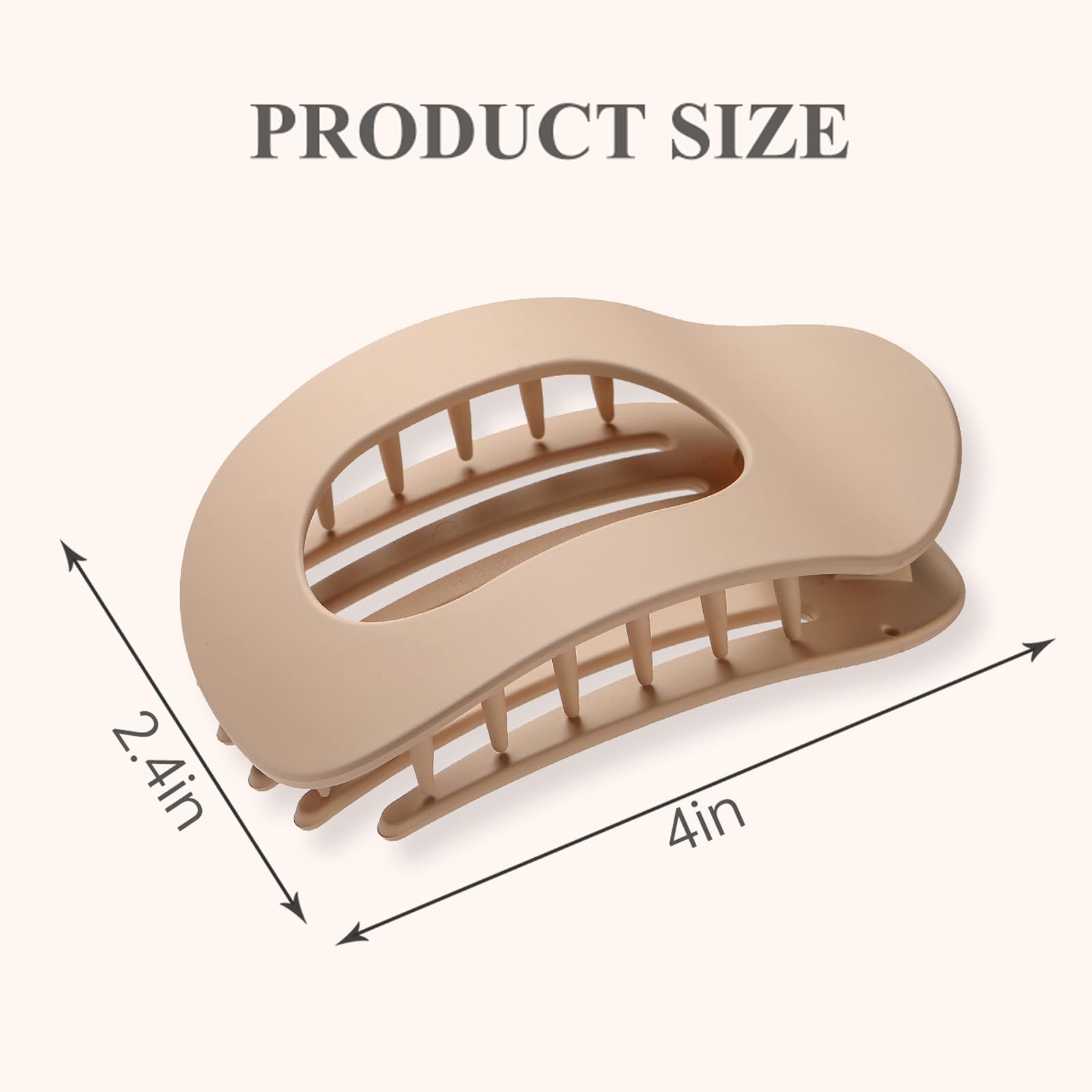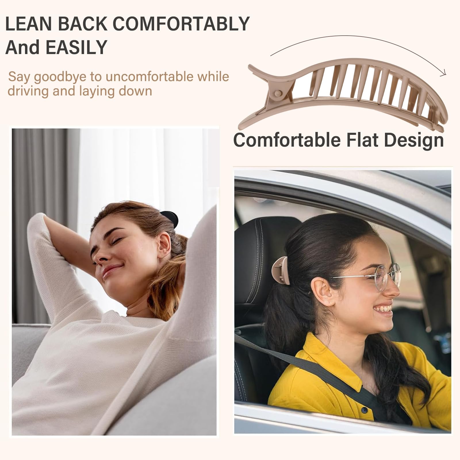 4 PCS Flat Hair Clips, Round Lay Down Hair Claw Clips for Women Girls, French Strong Hold Hair Barrettes for Thick Thin Hair,Comfortable Curved Flat Clips for Lying,Driving and More (Neutral Matte)