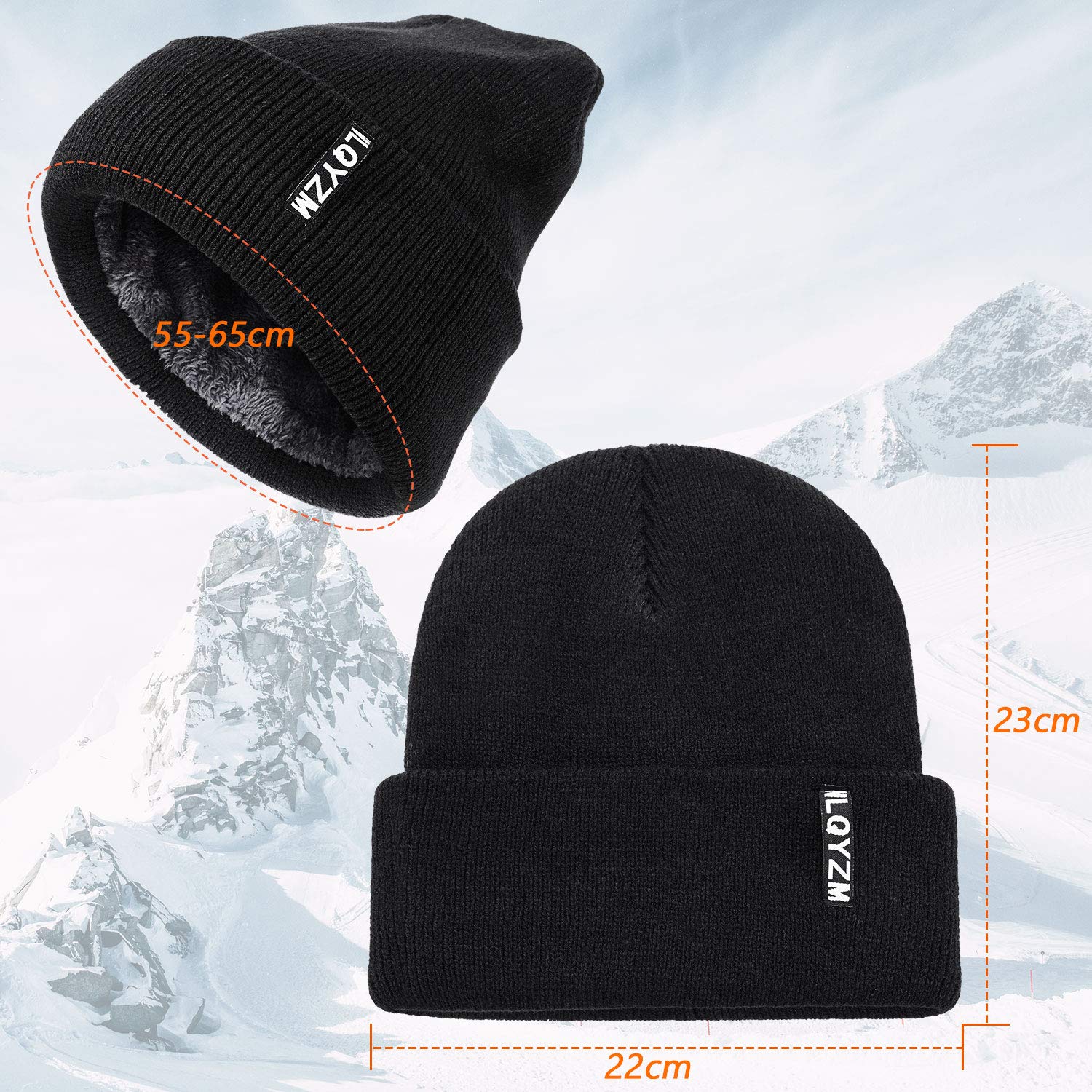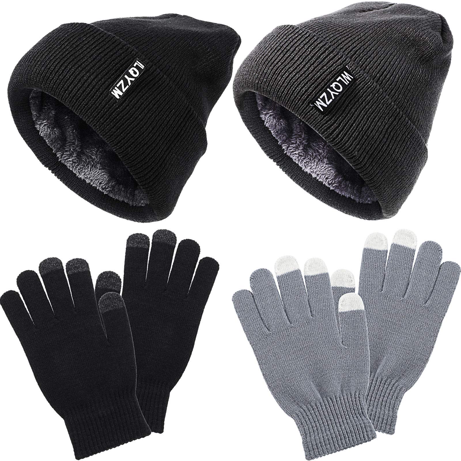 4 Piece Set Winter Beanie Hat and Glove Set with Fleece Lining, Winter Hat and Gloves Set, Unisex Cap and Glove Set for Men Women Black, Gray