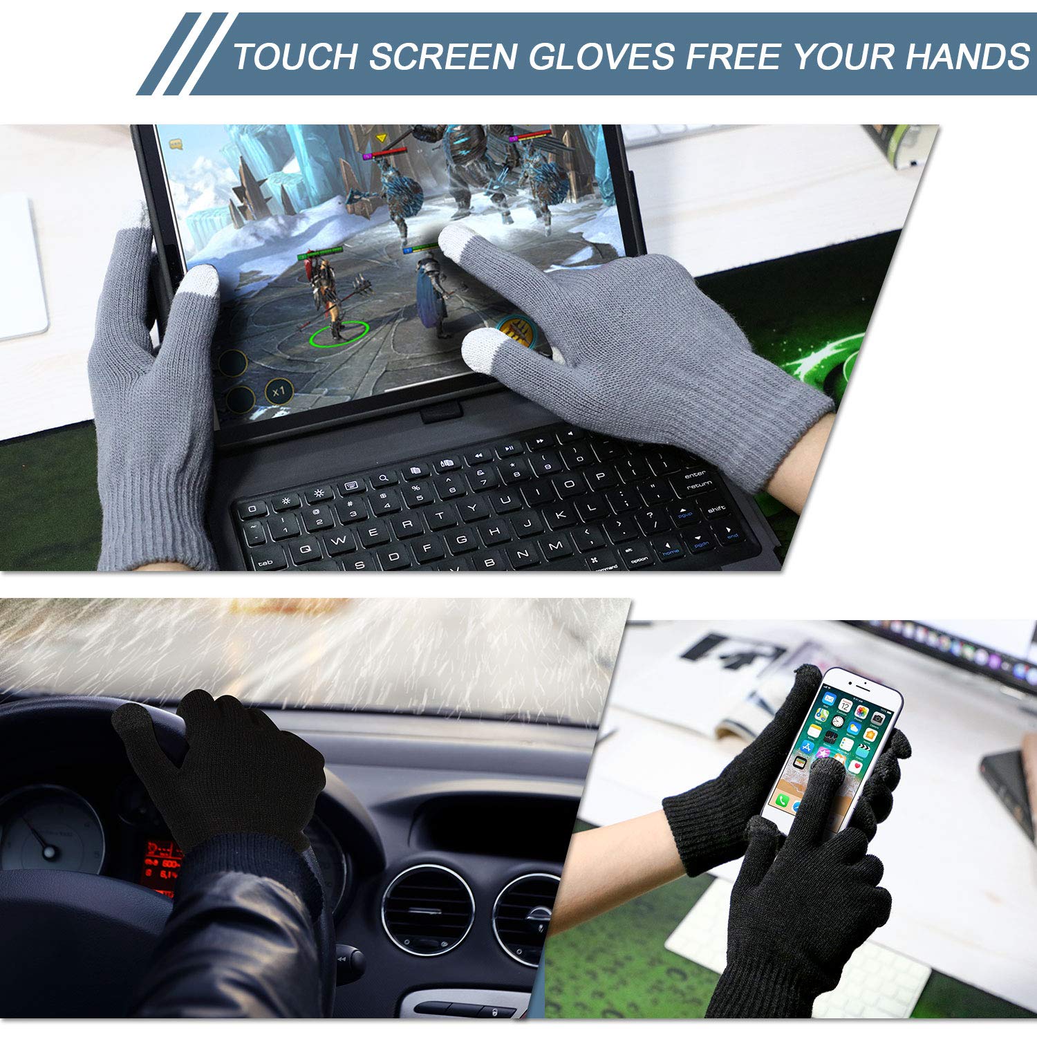 - All-round warmth: the great combination of beanie hat and winter gloves, plus the harmonious color of black and gray, this set will keep your vulnerable head, ears, hands warm and cozy