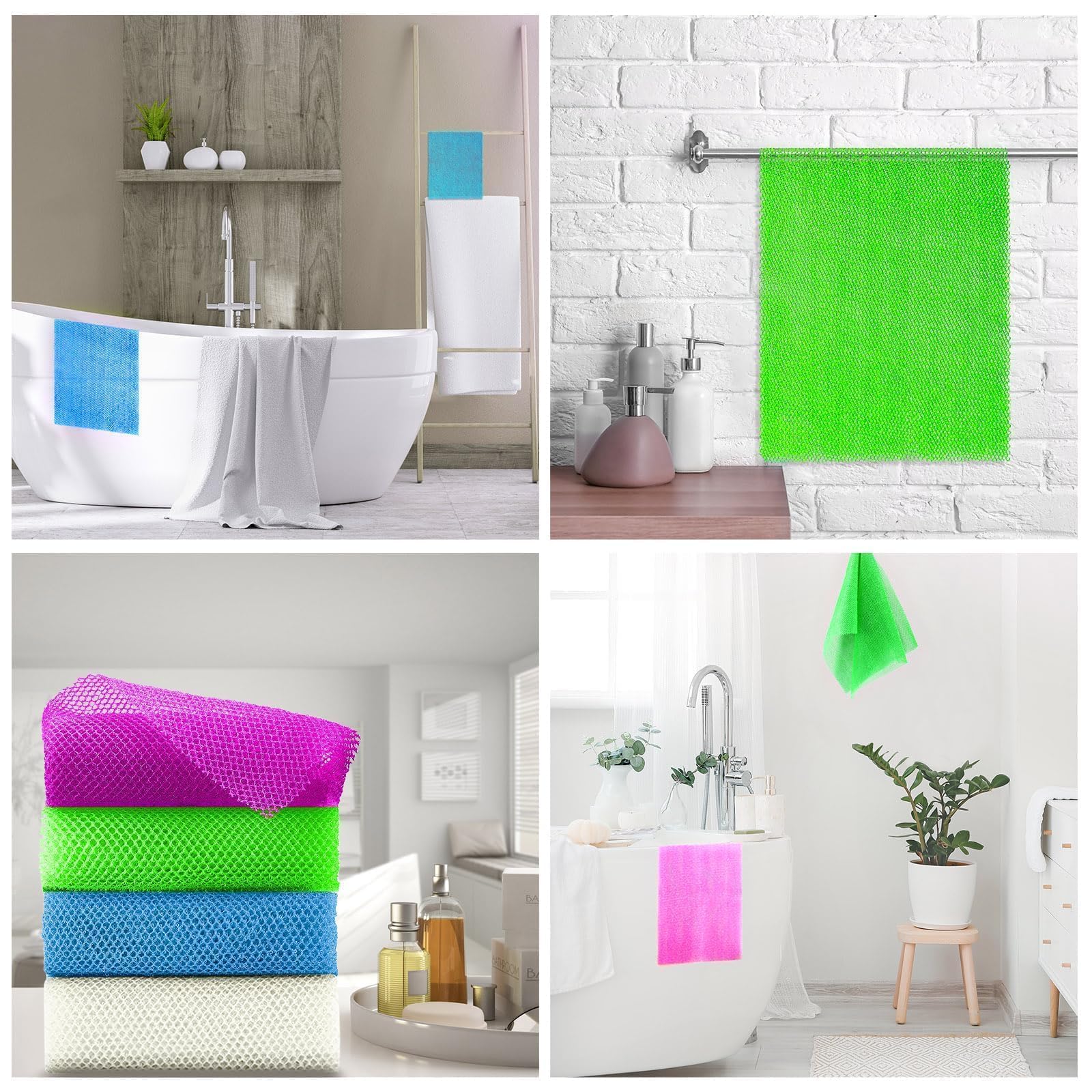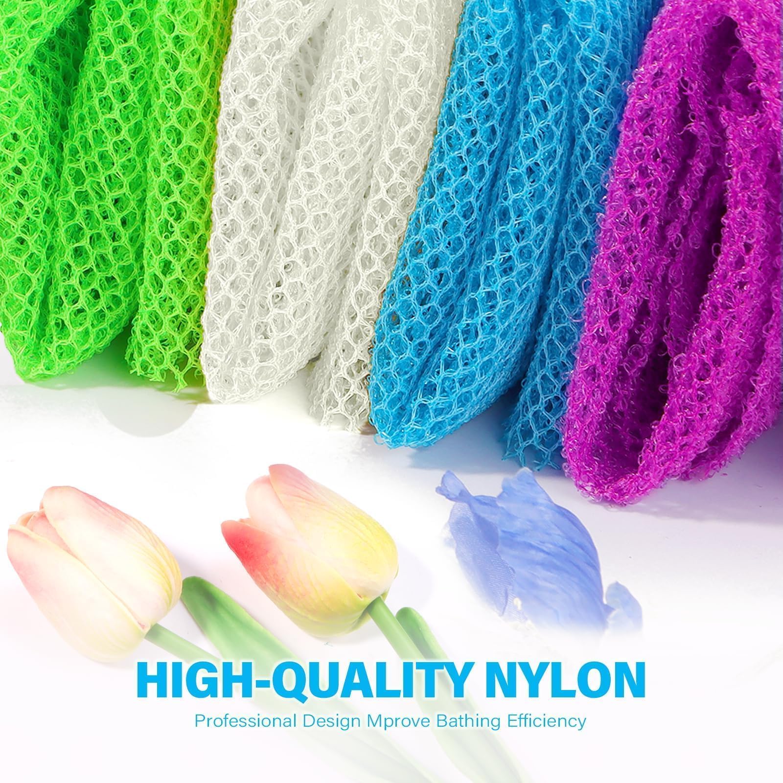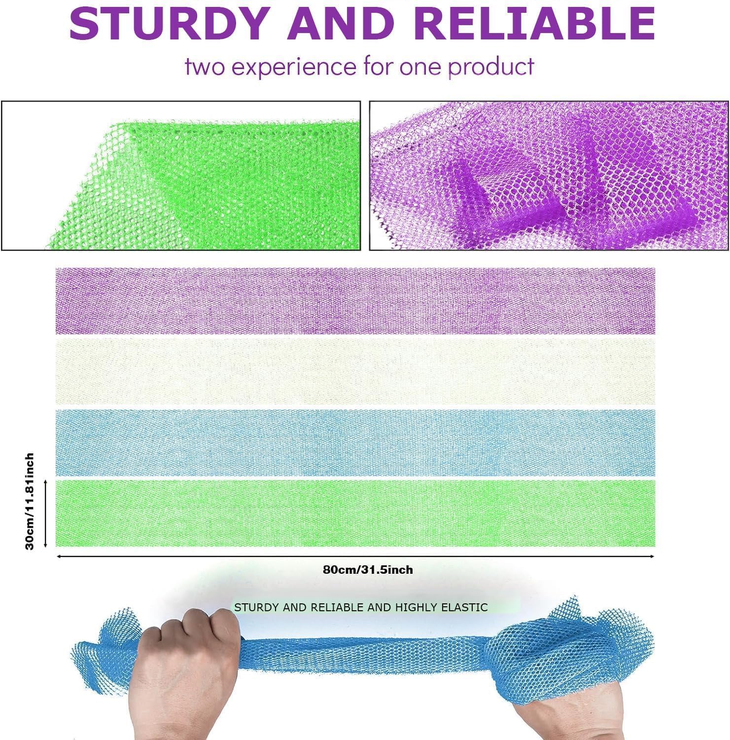 4 Pieces African exfoliating net African Net Long Net Bath Sponge Exfoliating Shower Body Scrubber Back Scrubber Skin Smoother,Great for Daily Use (Purple, Blue, Green, White)