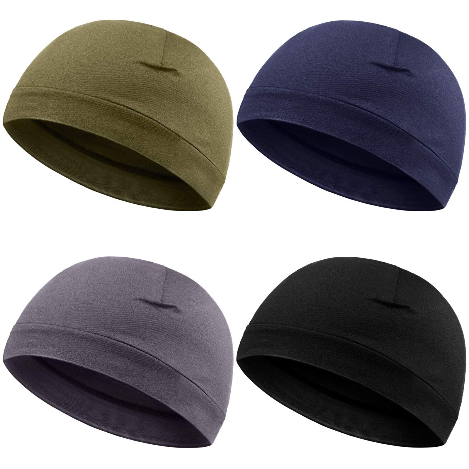 4 Pieces Men Skull Caps Soft Cotton Beanie Hats Stretchy Helmet Liner Multifunctional Headwear for Men Women (Black, Gray, Army Green, Navy Blue,Solid Style)
