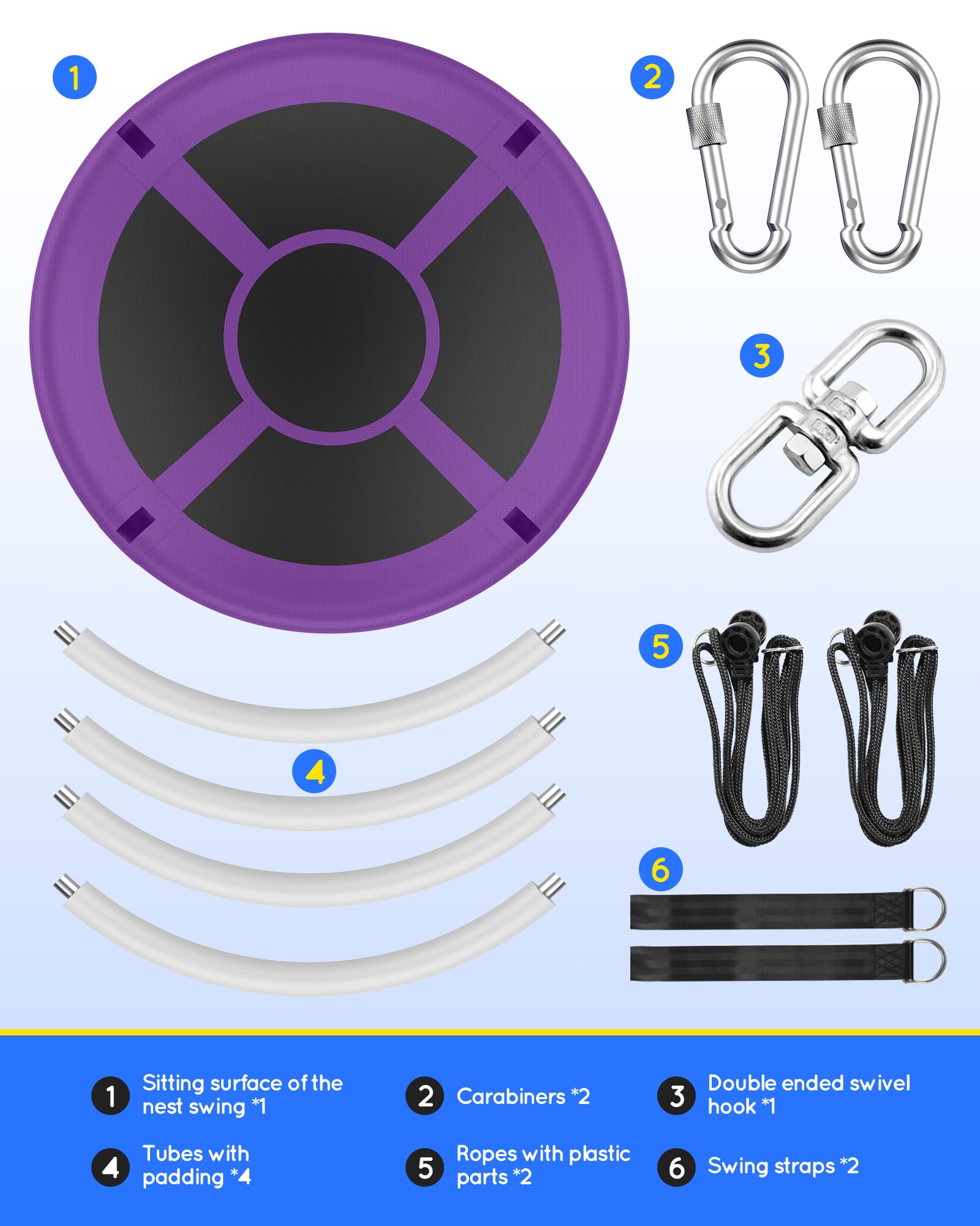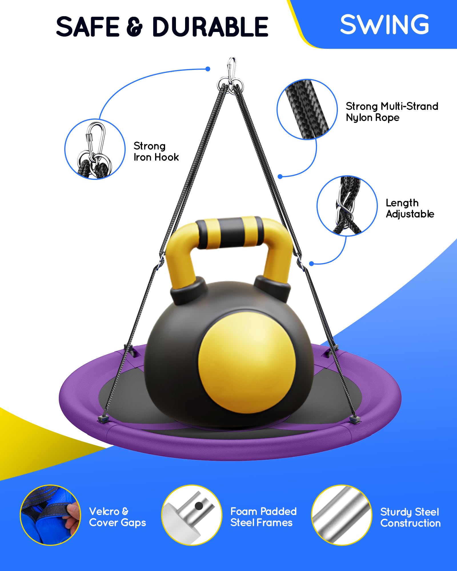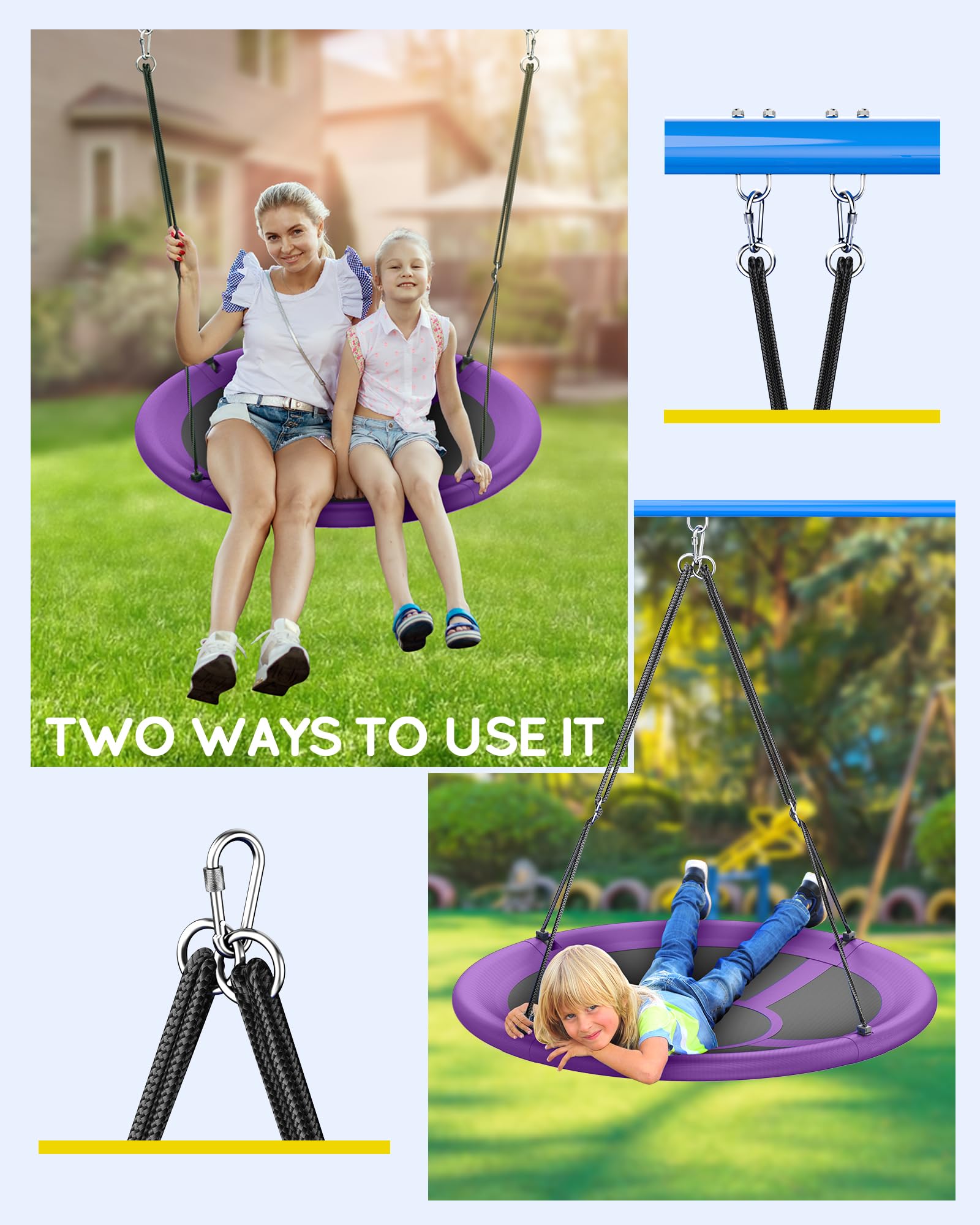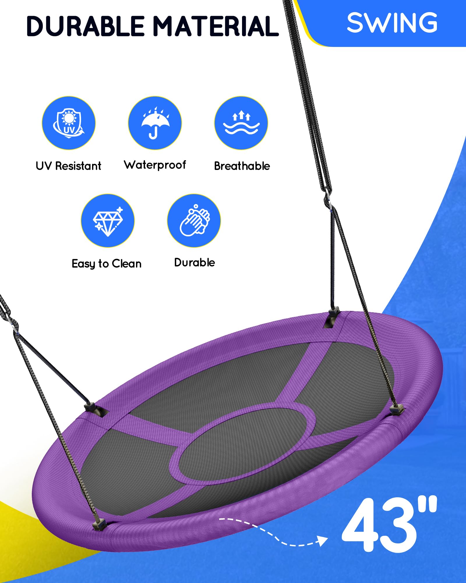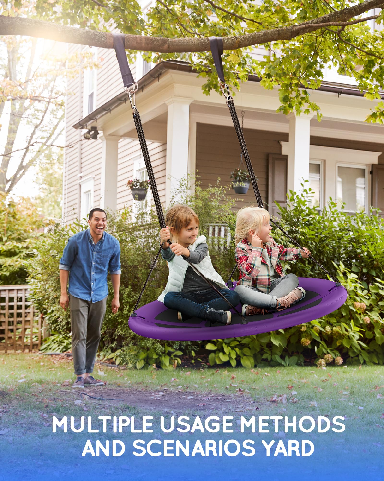 43" Saucer Tree Swing for Kids Adult, 700lbs Weight Capacity, Waterproof Flying Saucer Swing with Adjustable Hanging Straps, Swing Seats for Backyard Outdoor Indoor Playground, Purple