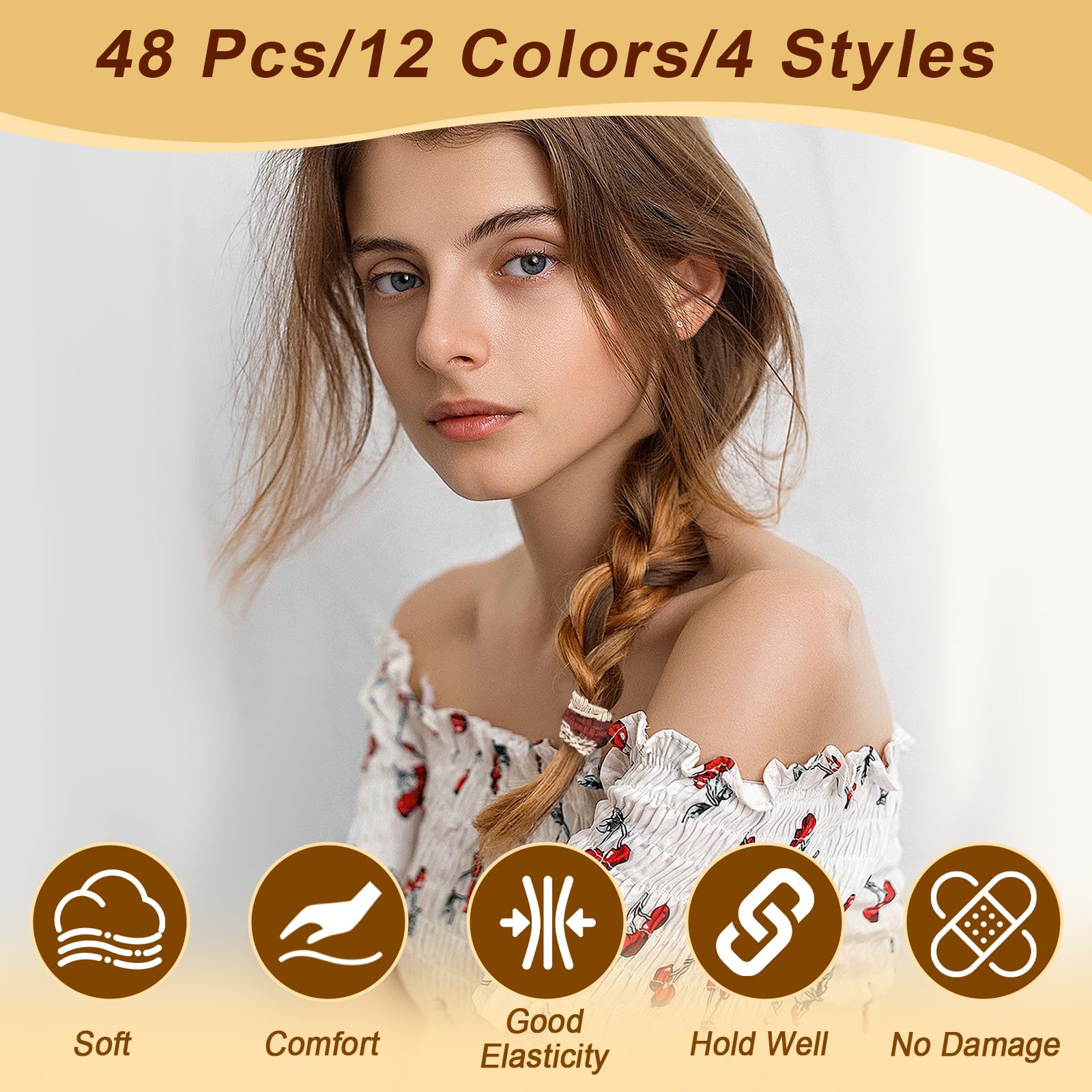 48 PCS Boho Hair Ties, Elastic Hair Tie Bracelets for Women, Cute Hair Ties No Damage, Ponytail Holders for Girls with Thick and Thin Hair - Multicolor