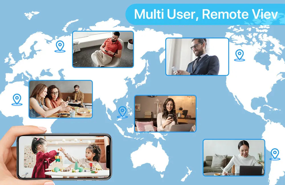 This solar ip camera can be shared to your family or friends, ask them to register account to receive the shared camera permission. Supporting Multiple Users watching live video at the same time via phone APP.