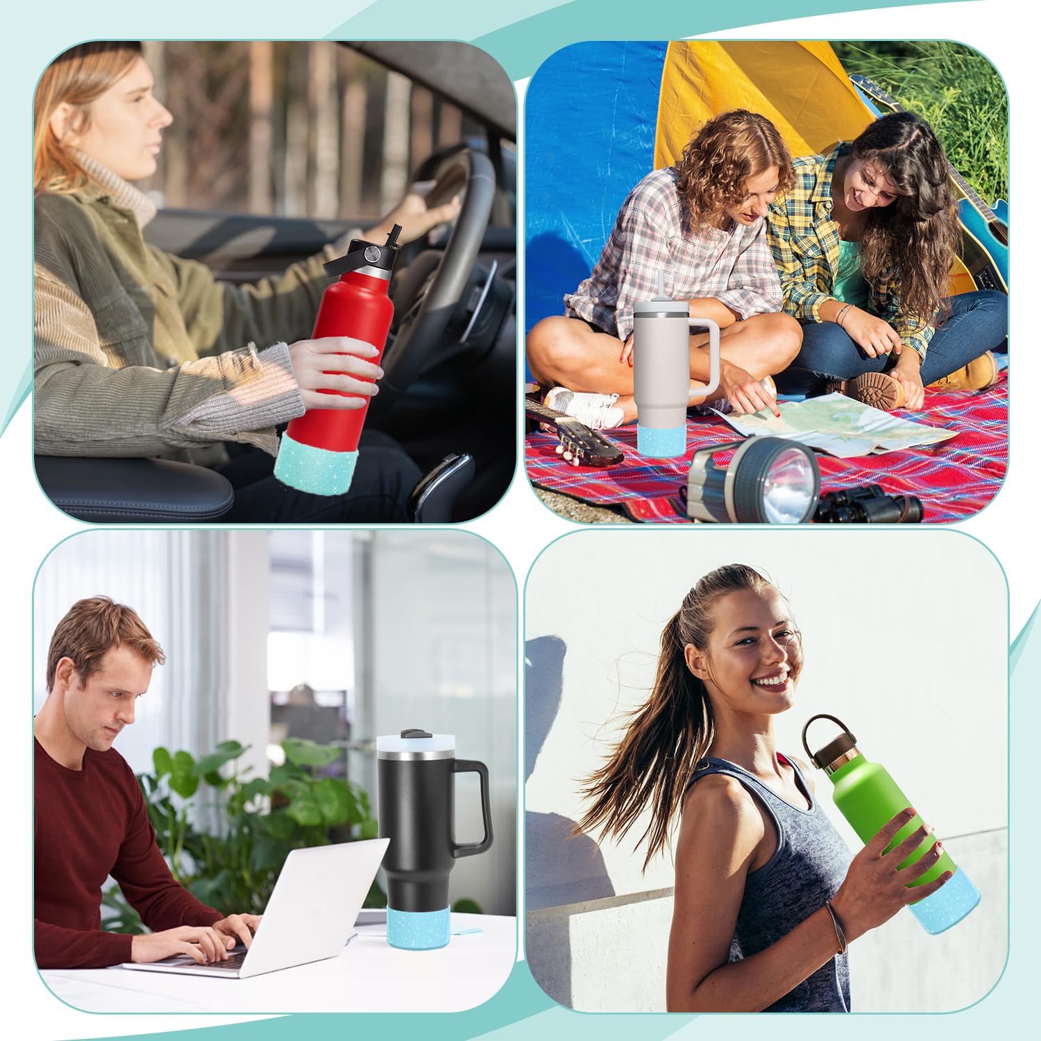 4Pcs Blue Glitter Silicone Boot for Stanley Cup H2.0 30oz 40 oz &Hydro Flask 12-24 oz and Water Bottle Bottom of 2.9-3in, Tumbler Boot Sleeve Cover Bottom Protector