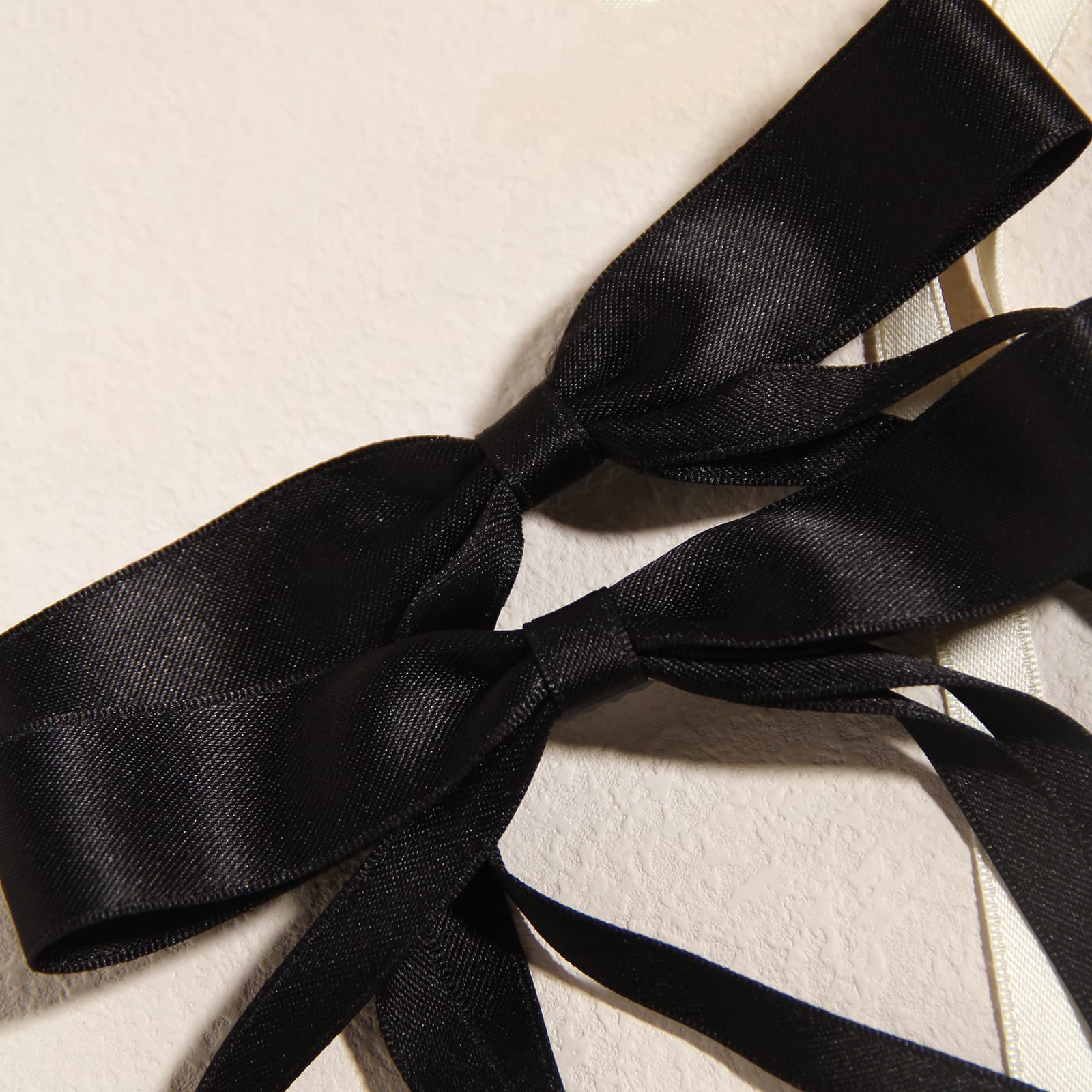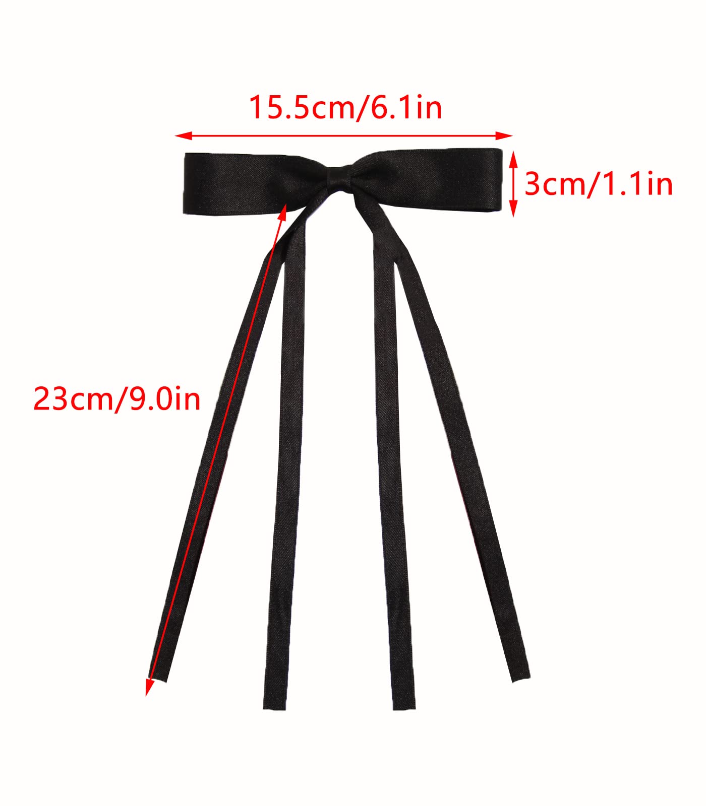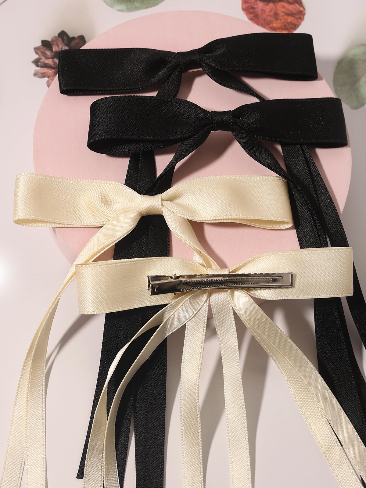 4pcs Hair Clips for Women Tassel Ribbon Bowknot With Long Tail, Clip Girl, Solid Accessories Barrettes Claw Bow (Black&Beige)