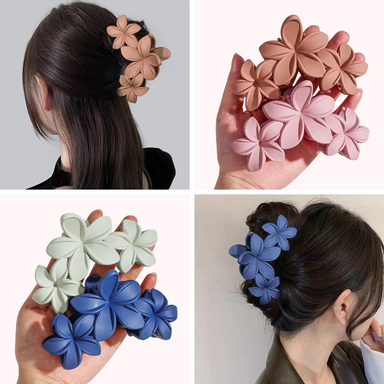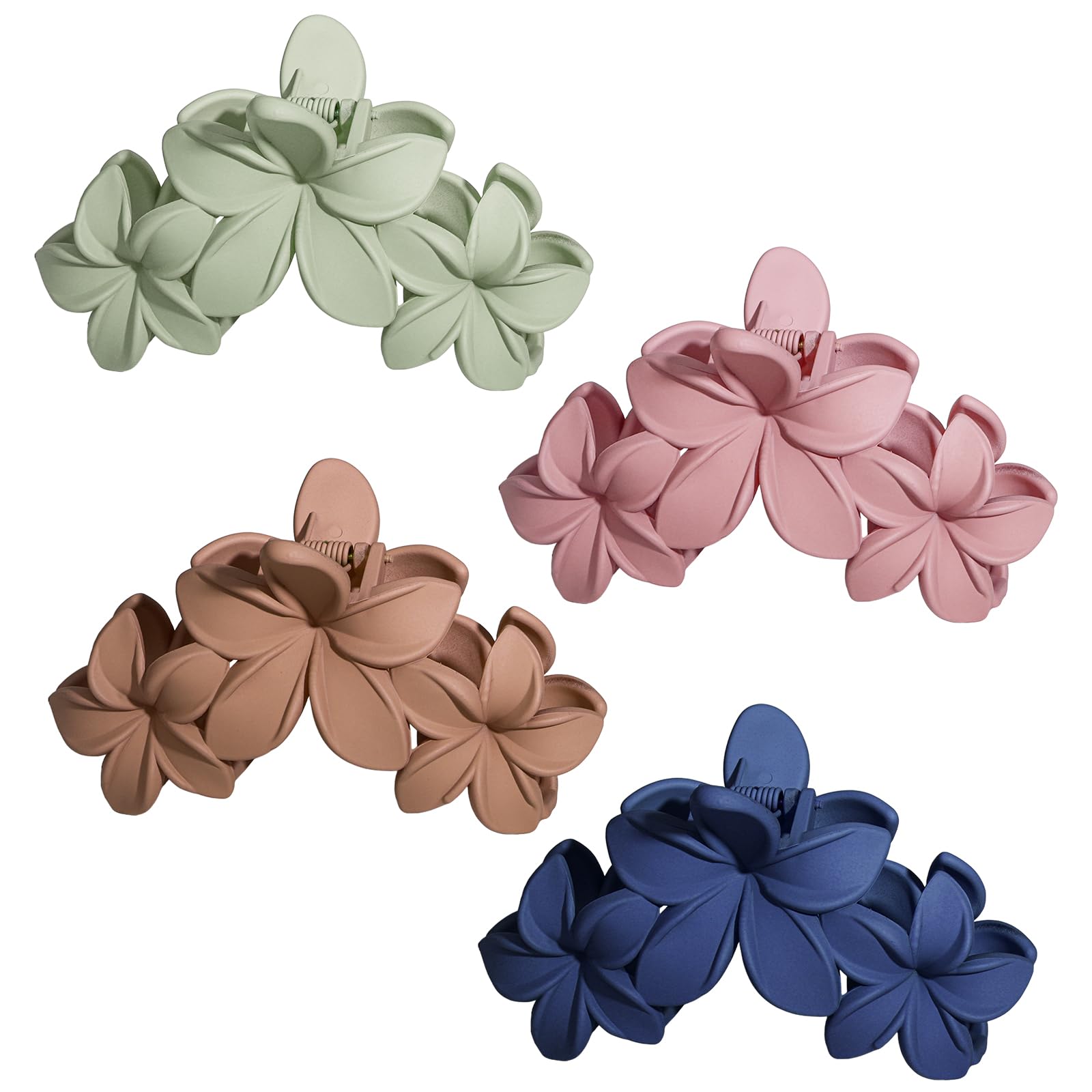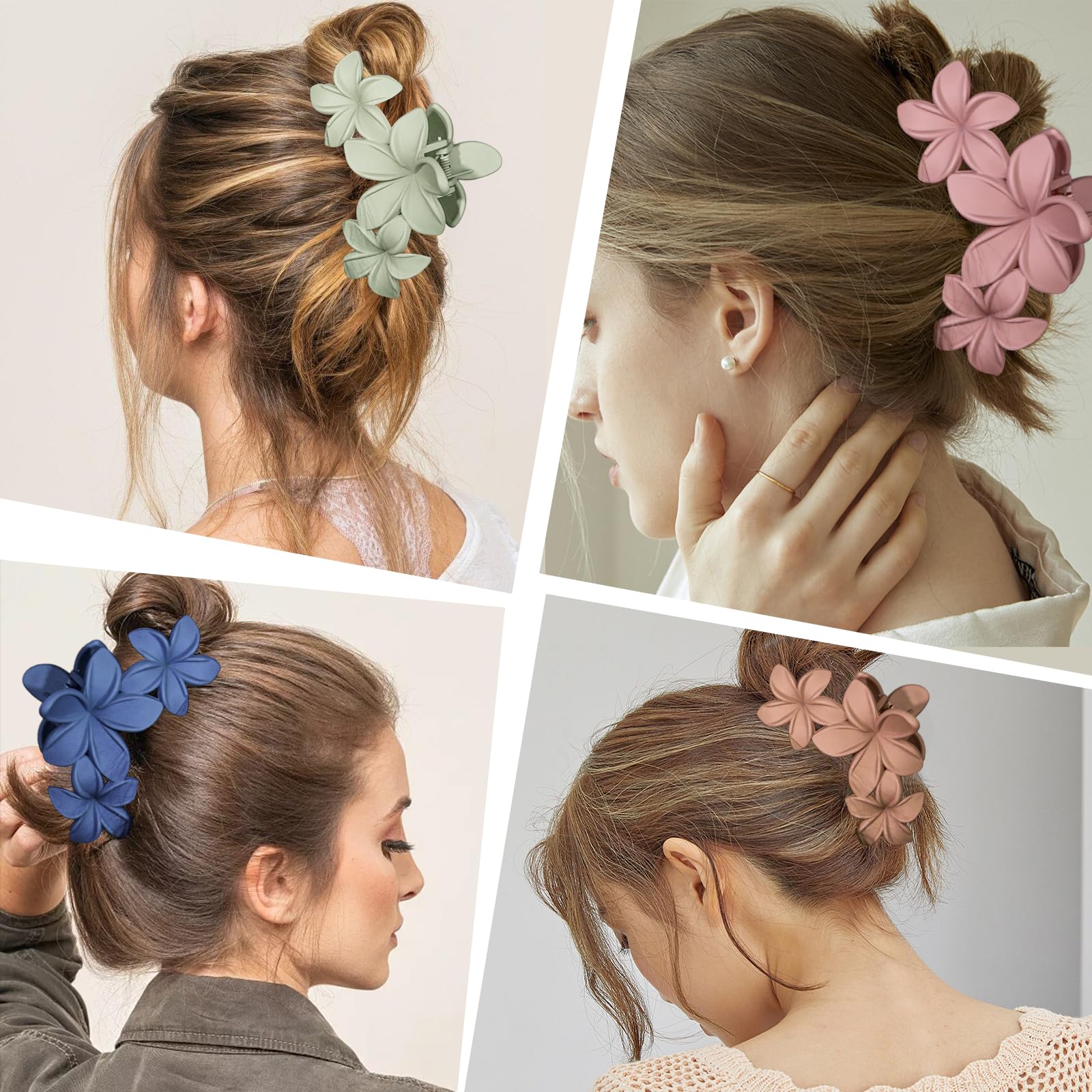 - Fashion Hair Accessories: Those Big Hair claw clips is lightweight, fashion which easy to match any outfit. 4 packs flower claw clips in one package, the color is easy to match almost your outfits, hair colors and hairstyles. Unique flower shape make you look graceful and sweet.