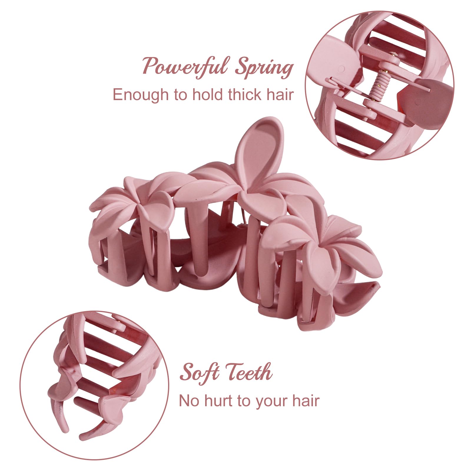- Non-Slip and Strong Hold: The flower claw clips are made of upgrade strengthened materials which are hard to break, deep teeth with interlocking teeth design can strong hold your thick hair and don't damage your hair.