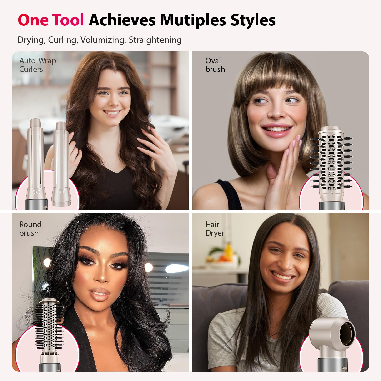 - 5 in 1 Hair Styler: Transform high-speed hair dryer into a 5 in 1 hot-air wrap multistyler, designed for creating curls, straightening, volumizing or drying your hair, allowing you to explore various hairstyles. You will have options for flex hair stylers instead of having to buy multiple hairstyler appliances.