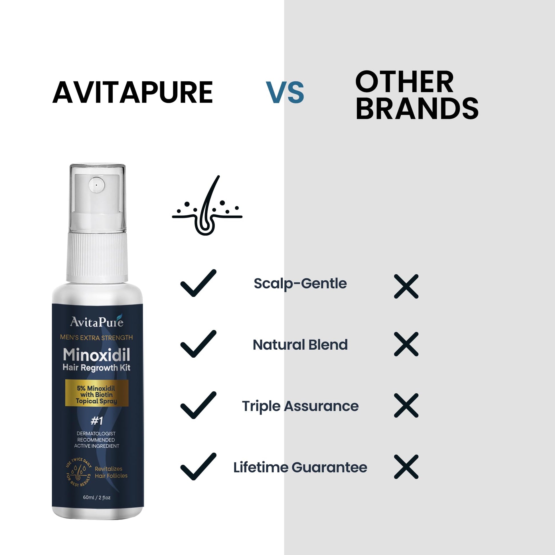 - CONFIDENCE GUARANTEED- Try Avitapure Minoxidil 5 Percent Hair Growth Kit risk-free. Our 100% Satisfaction Guarantee stands behind every purchase.