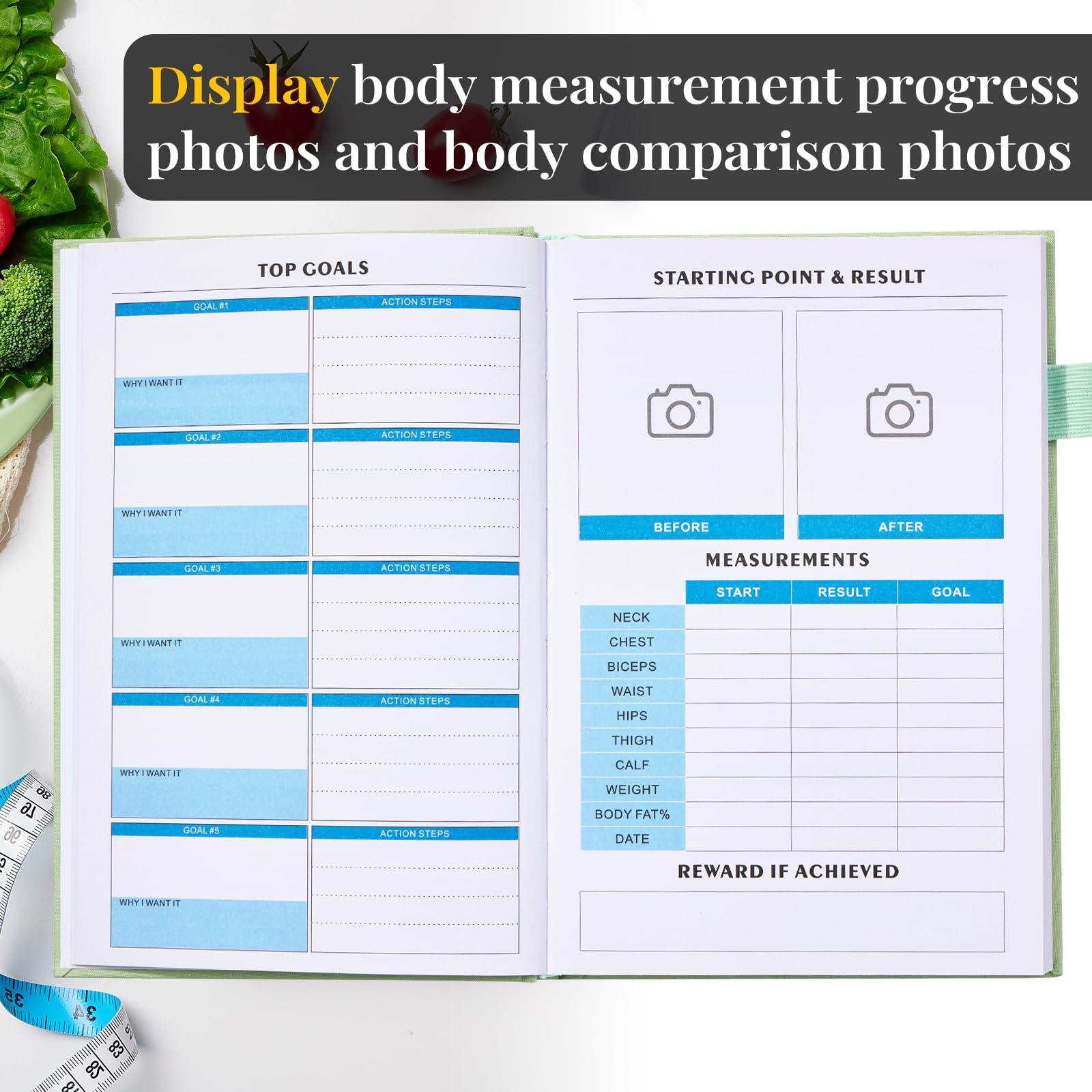 - Focus, Organized, Motivated: Food log journal have fitness goals and start and result point to monitor body changes. You can see your journey unfold over time,ensuring that you stay on track towards achieving your nutrition goals, making it easier to identify areas of improvement and celebrate milestones.