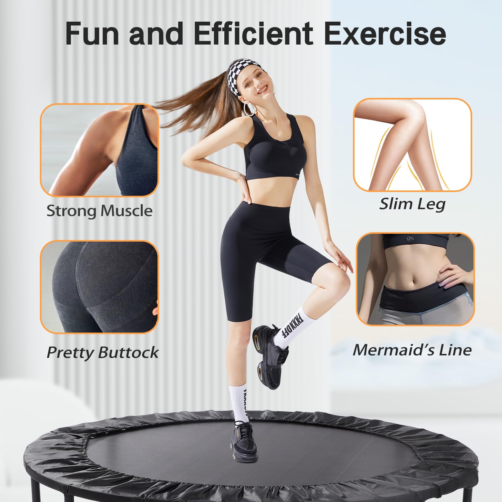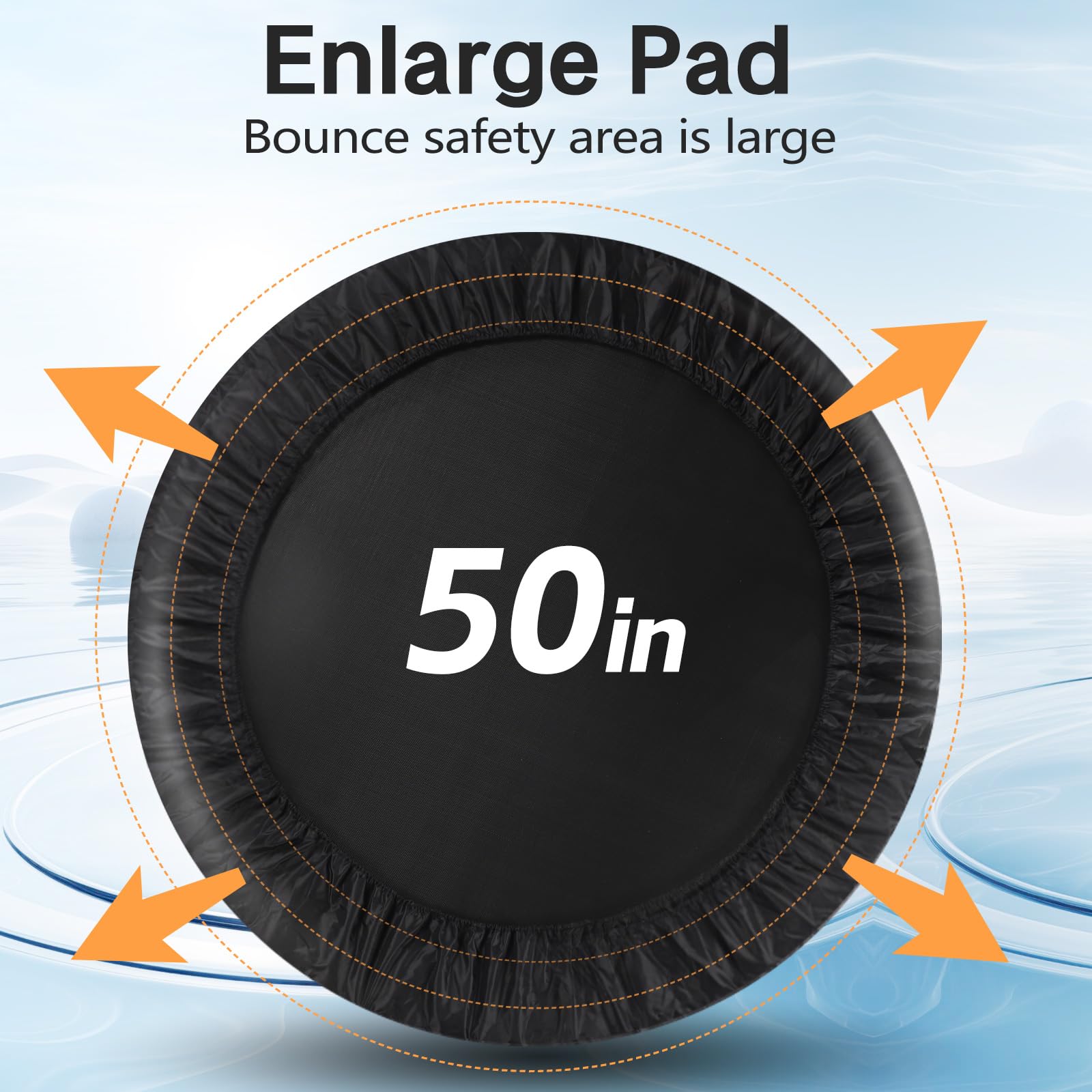 - Wear-Resistant PP Mat: The wear-resistant PP mat on our 50inch trampoline is engineered to endure intense workouts and regular use, more space provide more support. This pading is specifically designed to resist wear and tear, ensuring long-lasting performance.