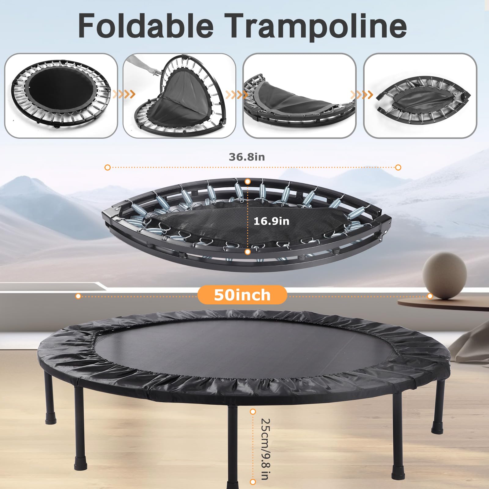 50 inch Rebounder Trampoline for Adults,Mini Trampoline for Adults Fitness, Portable Indoor/Outdoor Foldable Rebounder