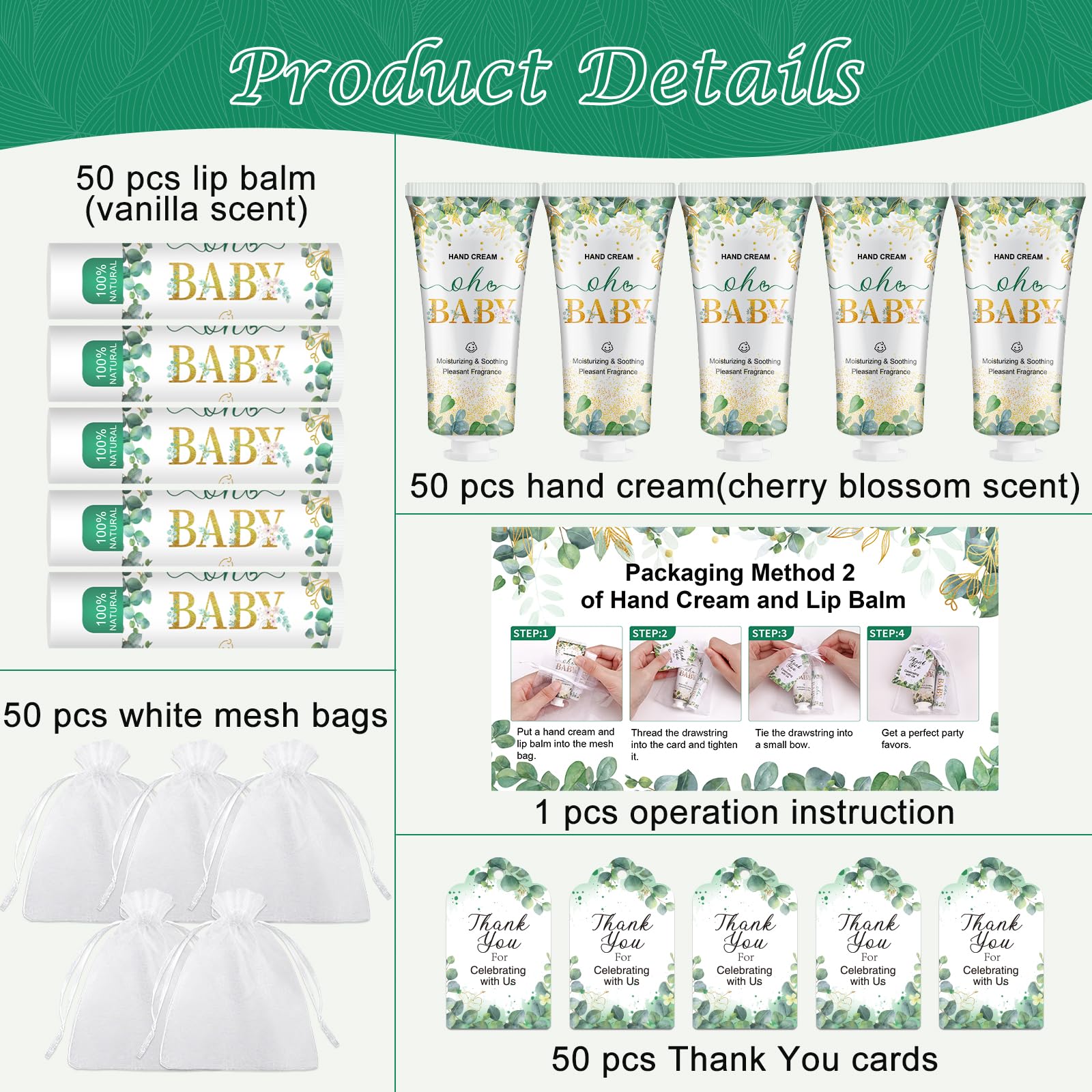 - 【50 Sets Baby Shower Favors】This baby shower hand cream and lip balm gift set includes 50pcs hand creams,50pcs lip balms,50pcs organza gift bags,50pcs thank you cards and 1pcs DIY manual.sufficient quantity and perfect combination to meet your guest gift needs