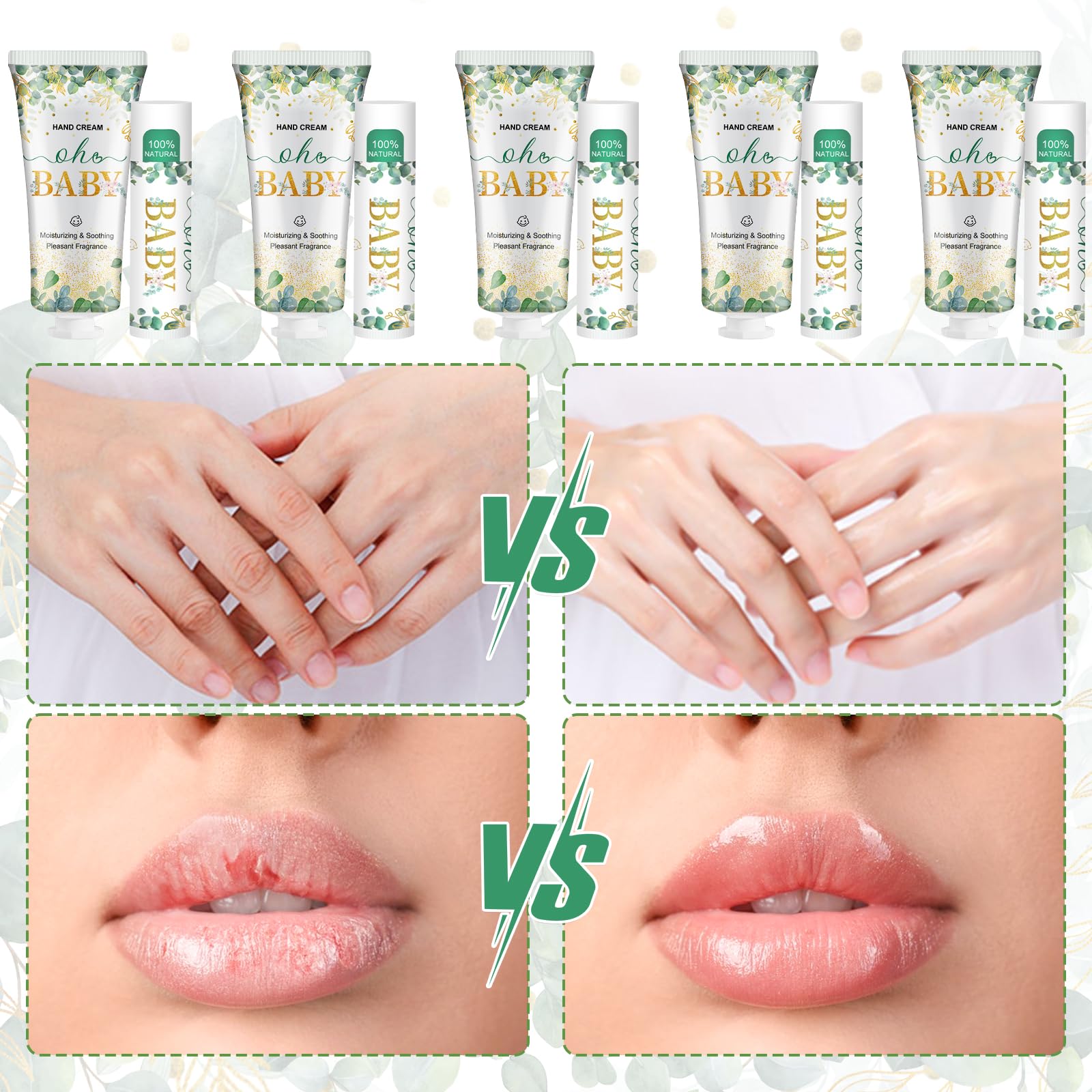- 【Baby Shower Thank You Gifts】Our hand cream and lip balm is designed with green eucalyptus leaves,symbolizing the gifts of nature and the beauty and happiness in life.The golden'Oh Baby'lettering perfectly fits the theme of the baby gift party.It's an excellent gift to give to customers as a thank-you gift