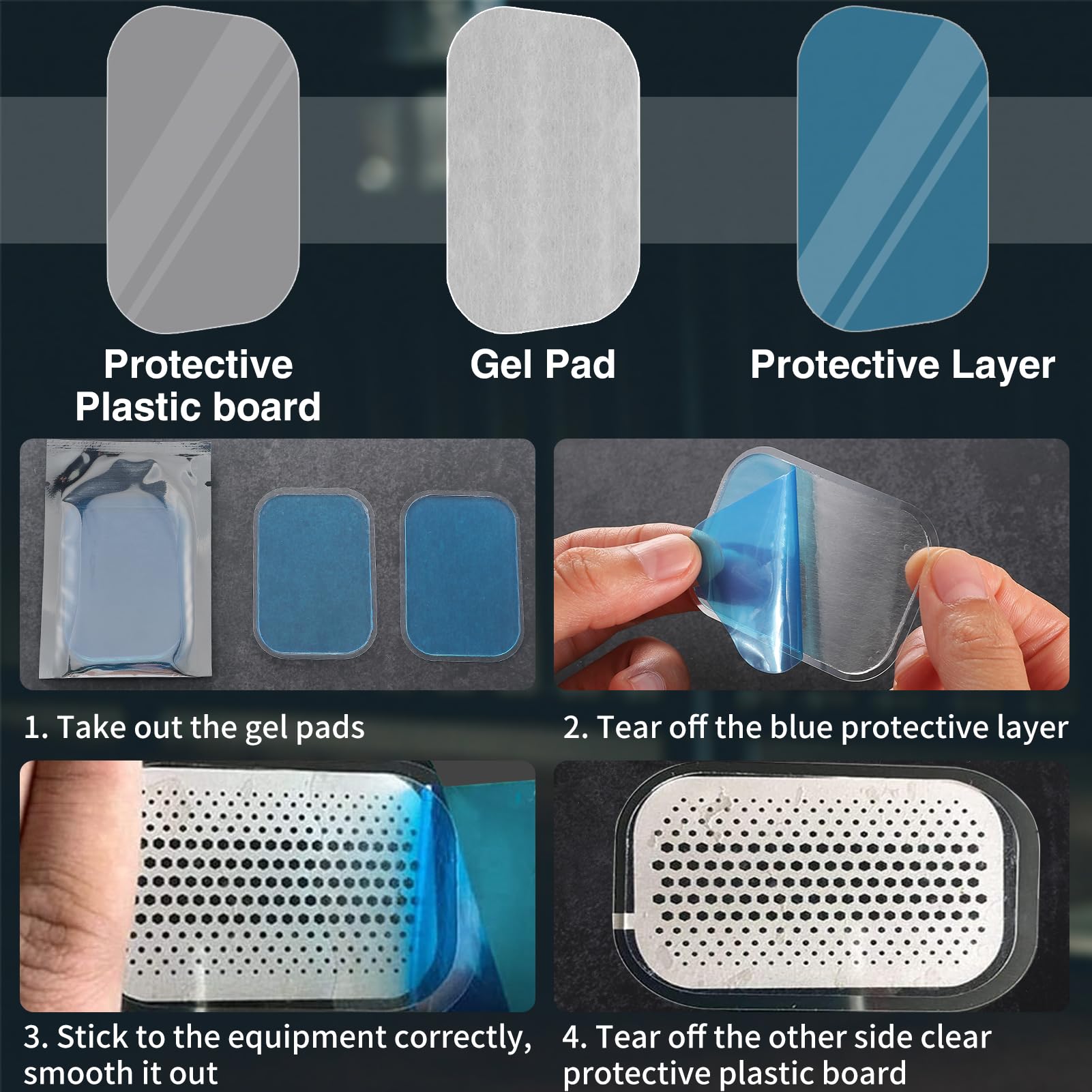 - ADHESIVE GEL PADS - These gel pads are made of high quality hydrogel, self-explanatory to use, just tear off the two protecctive layers, then stick to the placement of your belt. The gel pad need to be replaced regularly, every pad could serve 20-30 times.