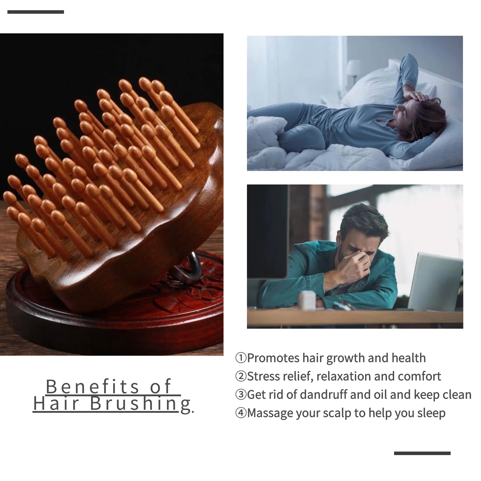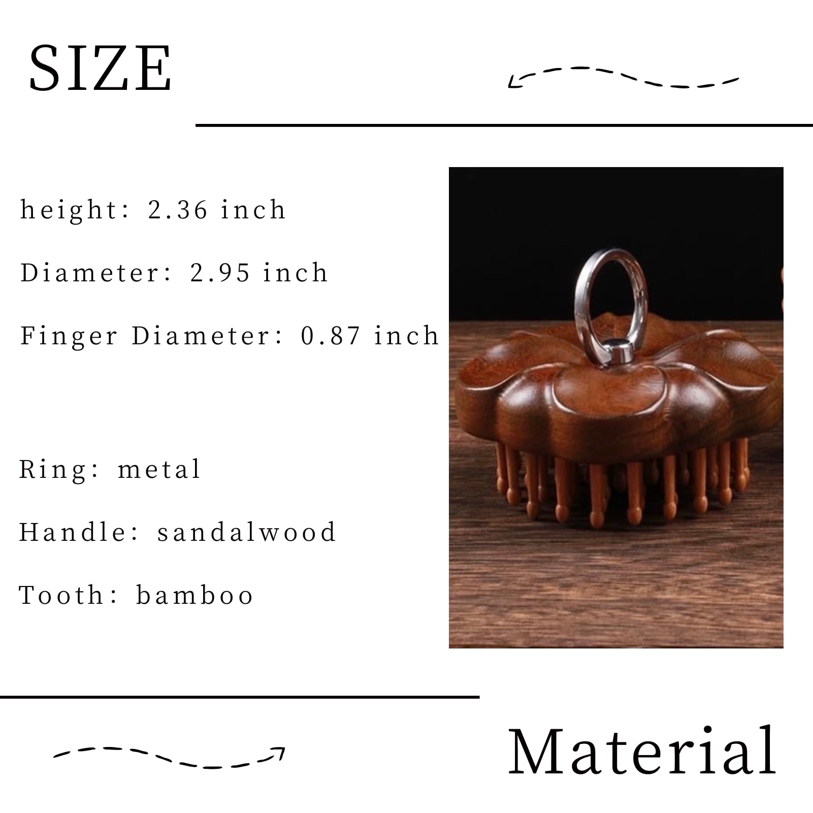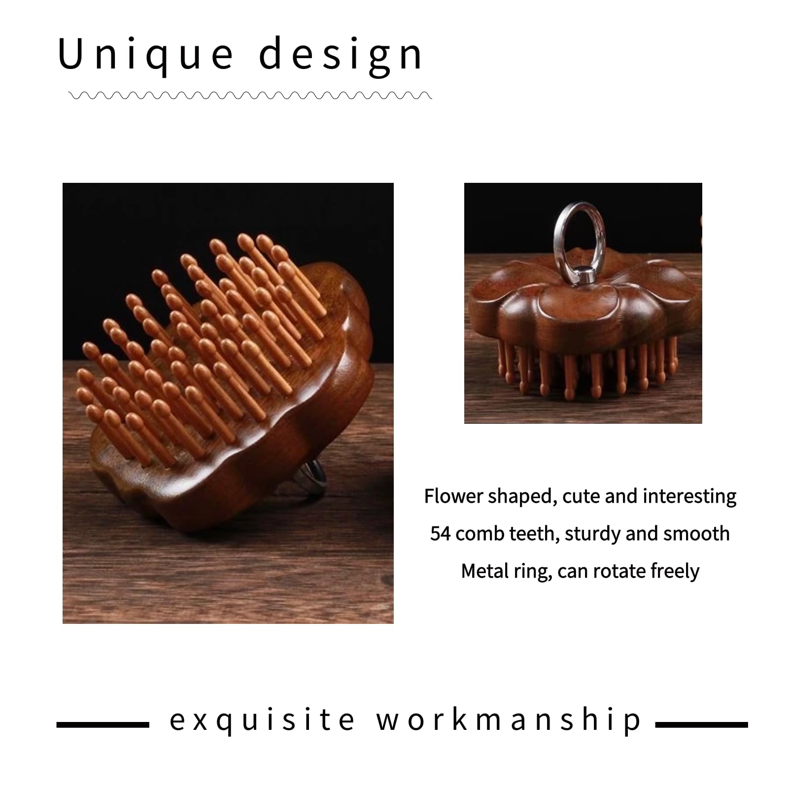 - Natural Material:The comb is made of sandalwood which is durable and not easy to deform. It has 54 fine teeth, more acupoints can be massaged.