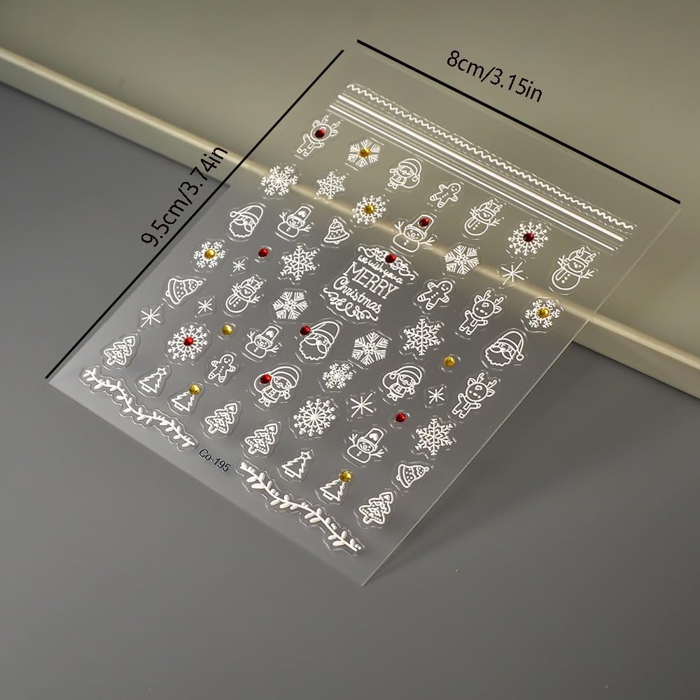- Christmas Nail Decals: 1 sheet of 5D embossing carving patterns litter Christmas nail stickers give people an intuitive and advanced exquisite feeling. Christmas elements summer fall winter design nail decals are perfect for decorations for your summer fall winter nails